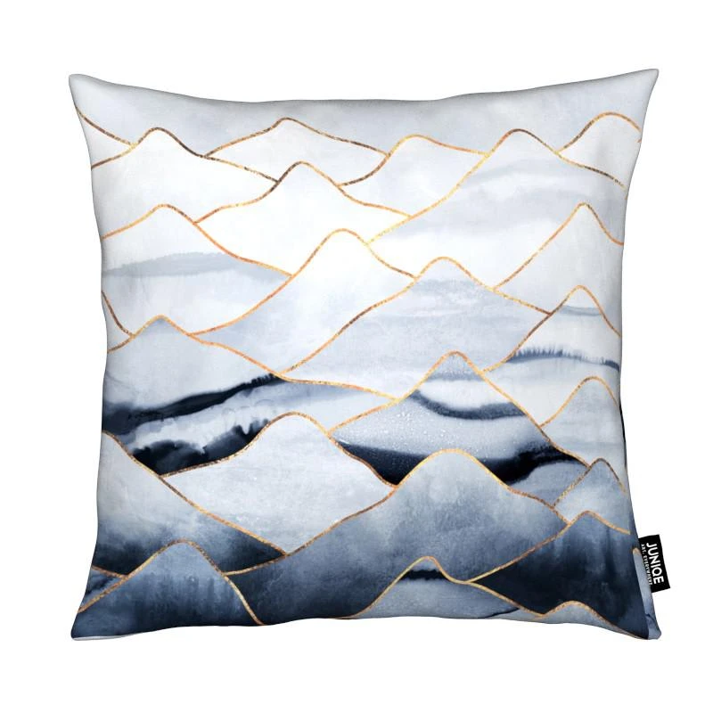 Quadratischer Kissenbezug mit All-Over-Druck und Reißverschluss. Bezug aus weichem, allergikergeeignetem Material. Füllkissen aus Kunstfaser. Versteckter Reißverschluss.