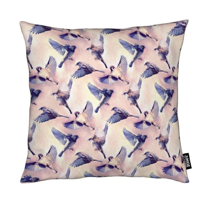 Quadratischer Kissenbezug mit All-Over-Druck und Reißverschluss. Bezug aus weichem, allergikergeeignetem Material. Füllkissen aus Kunstfaser. Versteckter Reißverschluss.