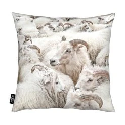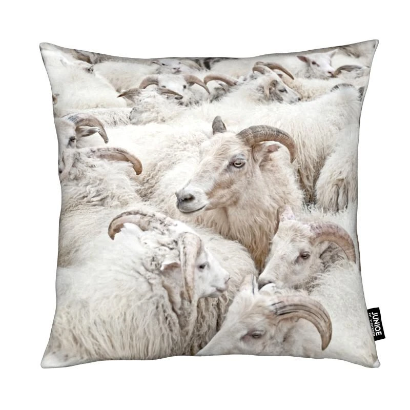 Quadratischer Kissenbezug mit All-Over-Druck und Reißverschluss. Bezug aus weichem, allergikergeeignetem Material. Füllkissen aus Kunstfaser. Versteckter Reißverschluss.