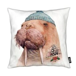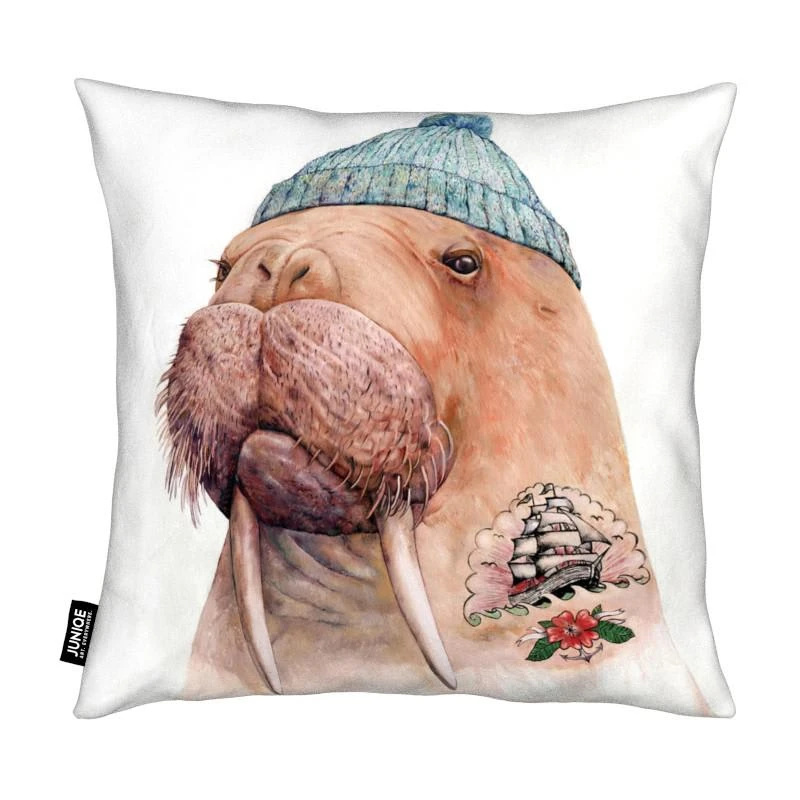Quadratischer Kissenbezug mit All-Over-Druck und Reißverschluss. Bezug aus weichem, allergikergeeignetem Material. Füllkissen aus Kunstfaser. Versteckter Reißverschluss.