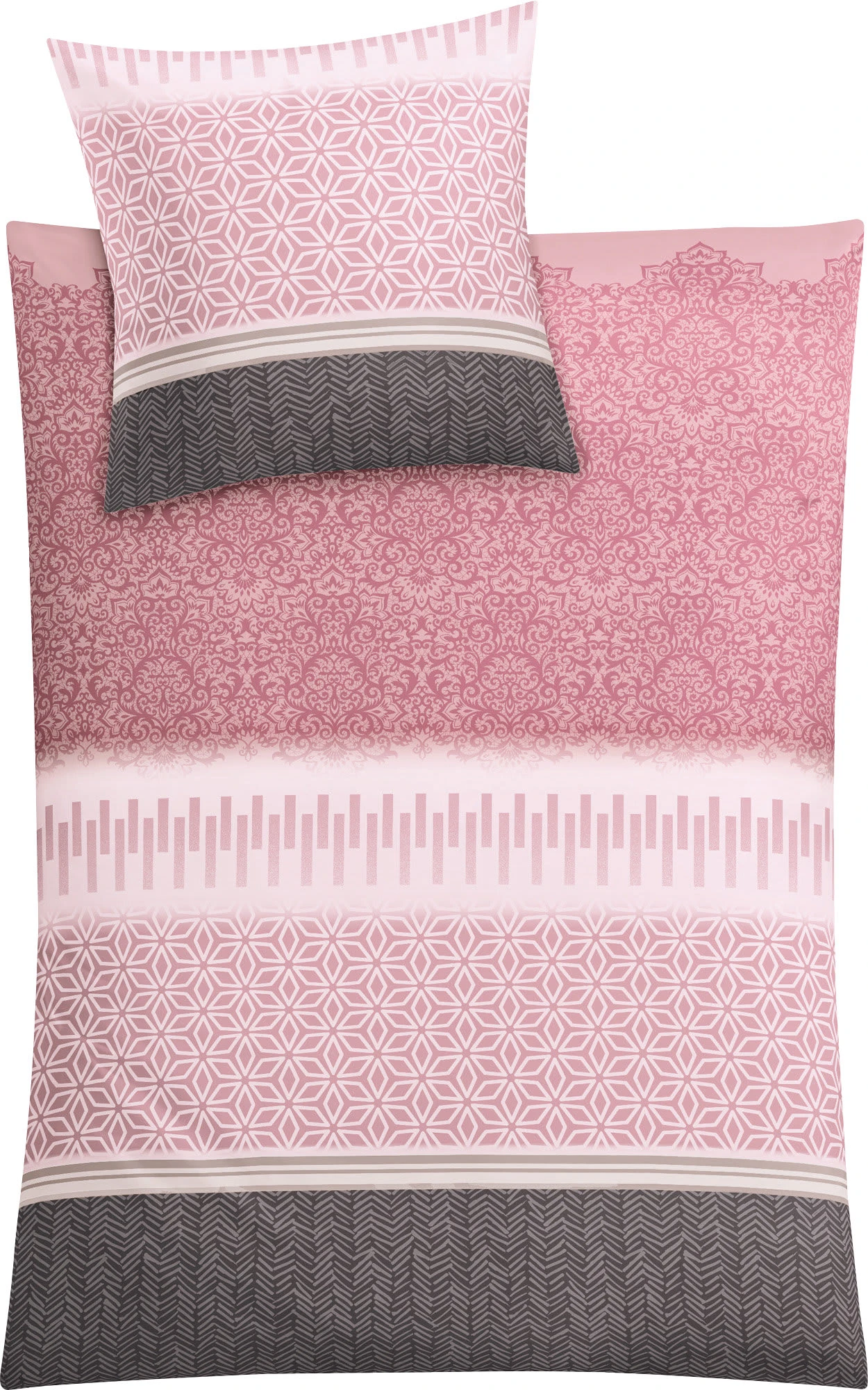 Kleine Wolke Mako-Satin Bettwäsche “Estrella”. Zeitlos modern wirkt die Komposition aus fantasievollen grafischen Mustern. Harmonisch abgestimmte Farben setzen souveräne Akzente. Schon vom ersten Griff an überzeugt Sie der seidig weiche, edel schimmernde Stoff aus gekämmten und mercerisierten Garnen. Er wurde aus ausgesuchten Rohstoffen hergestellt und sorgfältig verarbeitet. Darüber hinaus lässt sich die Bettwäsche dank praktischem Reißverschluss einfach be- und abziehen.