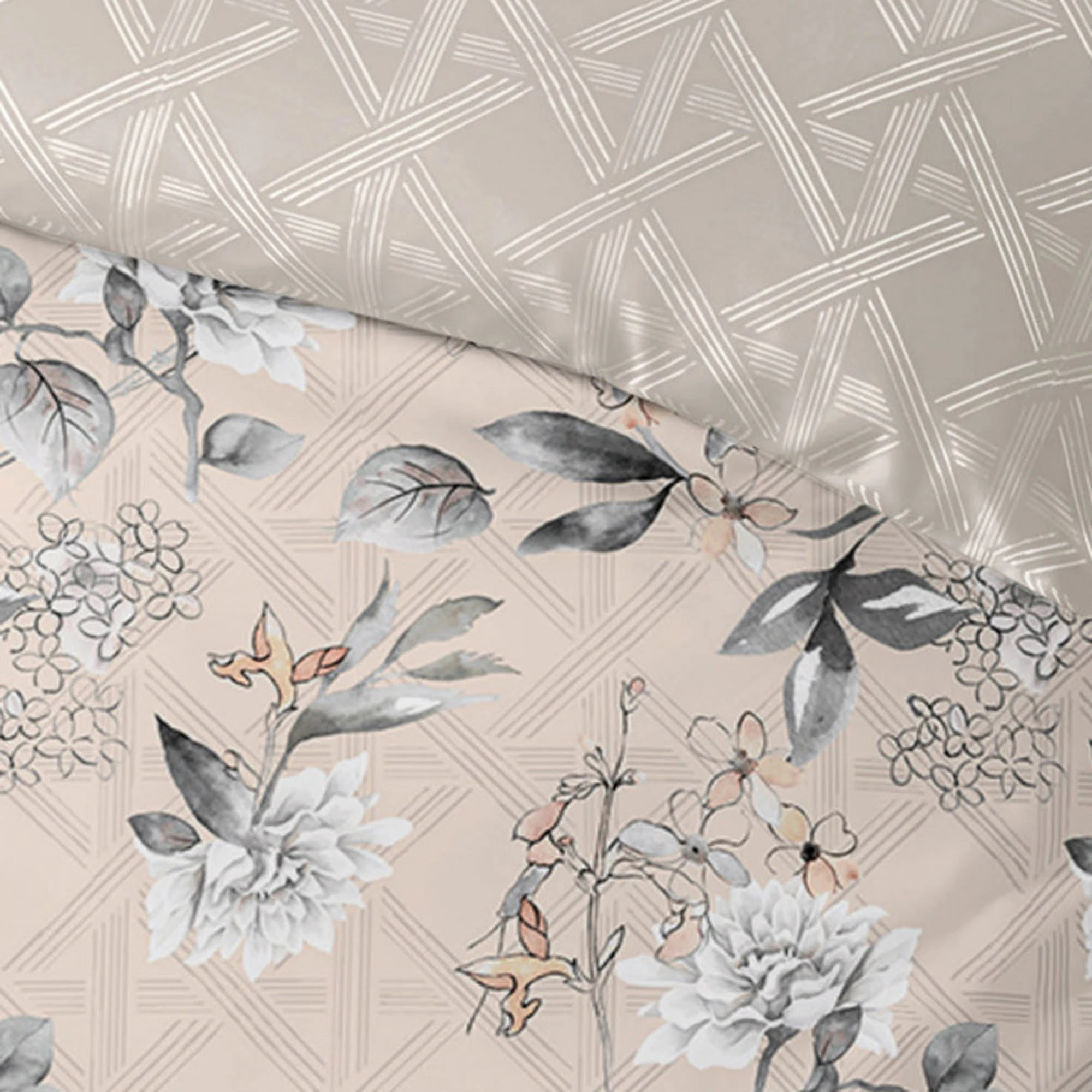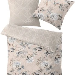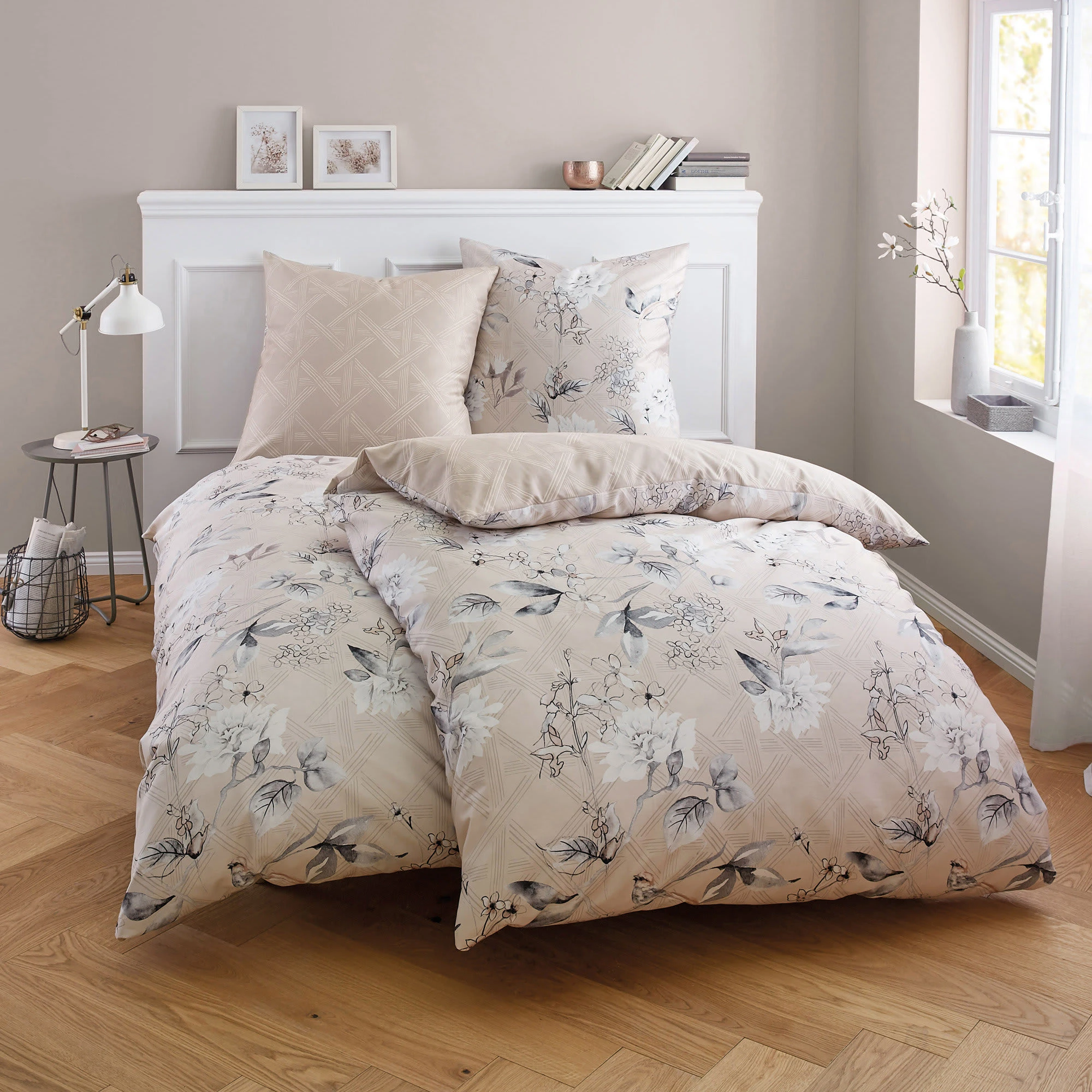 Kleine Wolke Mako-Satin Wendebettwäsche “Kessia”. Ein feines Gittermuster bildet die Basis für das reizende Blumendekor in eleganter Farbstellung. Es findet sich auch auf der Rückseite wieder und sorgt so für einen hübschen Kontrast. Schon vom ersten Griff an überzeugt Sie der seidig-weiche, edel schimmernde Stoff aus gekämmten und mercerisierten Garnen. Er wurde aus ausgesuchten Rohstoffen hergestellt und sorgfältig verarbeitet. Darüber hinaus lässt sich die Bettwäsche dank praktischem Reißverschluss einfach be- und abziehen.
