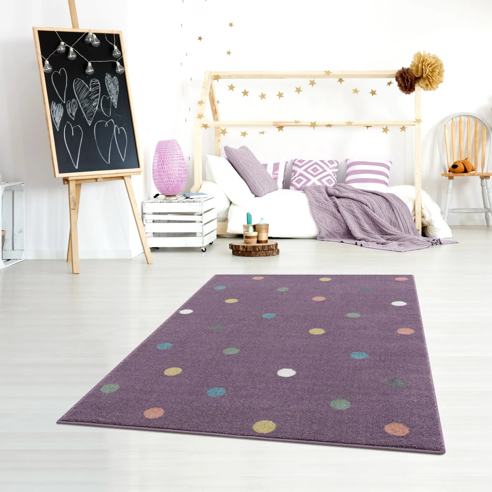 Der “Wheel” Kinderteppich zeichnet sich durch sein stylisches Design aus. Das tolle Punktedesign steht im Vordergrund. Dank dieser modernen Optik ist der Teppich nicht nur hervorragend für das Kinderzimmer geeignet, sondern ebenso für alle anderen Wohnräume. Dazu überzeugt der Kinderzimmerteppich mit pflegeleichten sowie strapazierfähigen Merkmalen.