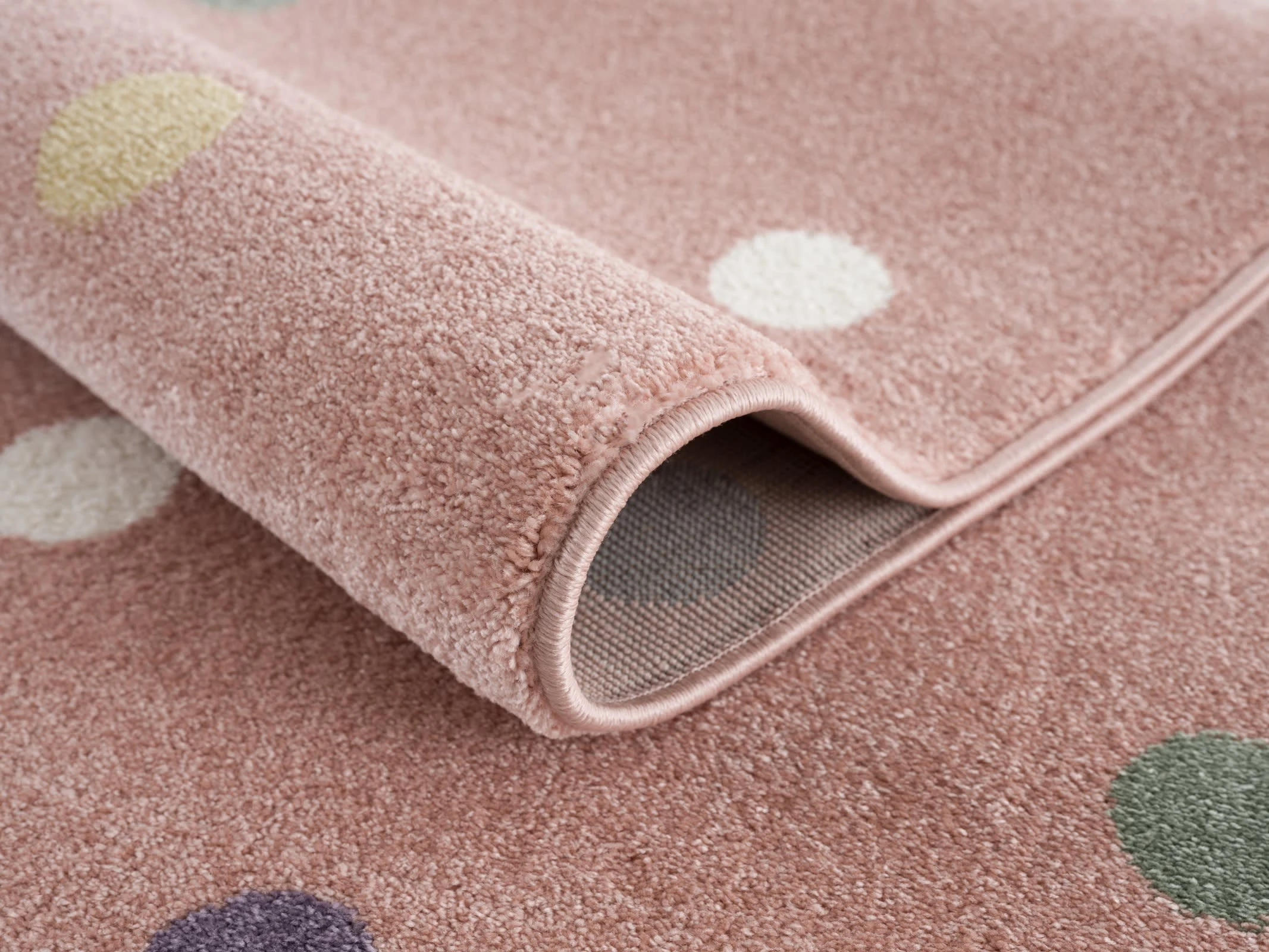 Der “Wheel” Kinderteppich zeichnet sich durch sein stylisches Design aus. Das tolle Punktedesign steht im Vordergrund. Dank dieser modernen Optik ist der Teppich nicht nur hervorragend für das Kinderzimmer geeignet, sondern ebenso für alle anderen Wohnräume. Dazu überzeugt der Kinderzimmerteppich mit pflegeleichten sowie strapazierfähigen Merkmalen.