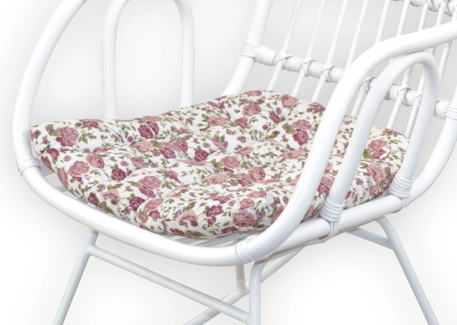 Bequemes Sitzkissen mit Vliesfüllung, bezogen mit einem trendigen Stoffbezug, mit Rosenmotiv bedruckt, (65% Baumwolle, 35% Polyester) mit einer extra starken Vliesfüllung und aufwendig, formstabil abgenäht. Maße ca. cm: B. 52 x T. 48 x Stärke ca. 5 cm.