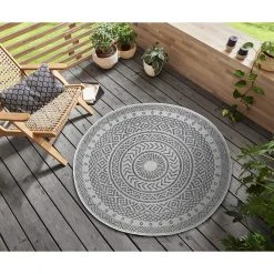 Northrugs In- & Outdoor Teppich Giro Anthrazit Creme, 160 Cm Rund