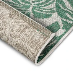 Northrugs In- & Outdoor Teppich Monstera Smaragdgrün Creme