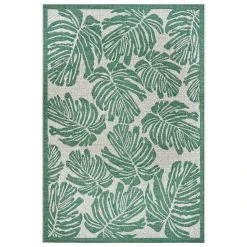 Northrugs In- & Outdoor Teppich Monstera Smaragdgrün Creme