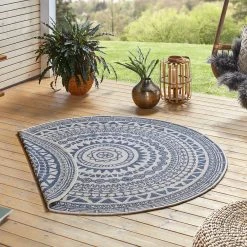 Northrugs In- & Outdoor Wendeteppich Coron Blau Creme, Rund
