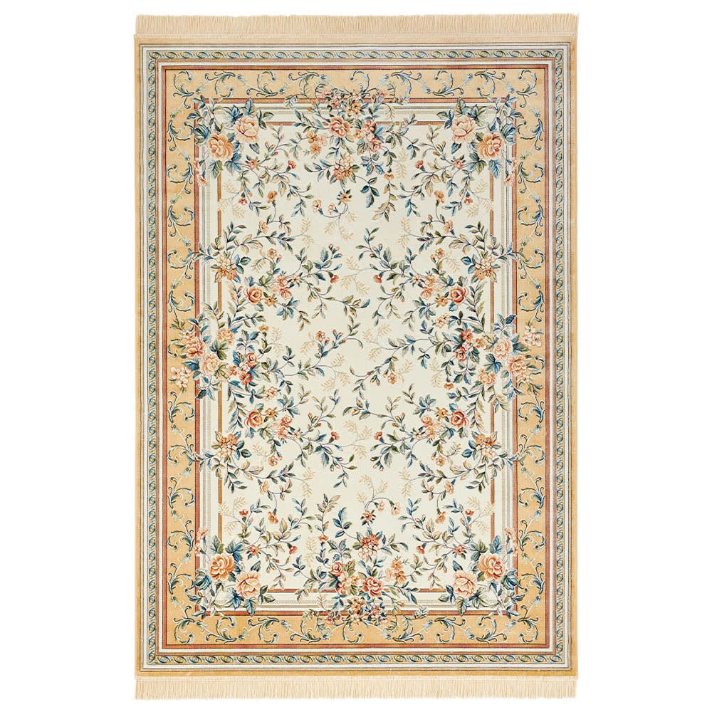 Nouristan Orientalischer Samt-Teppich Fransen Antik Flowers Creme Cord