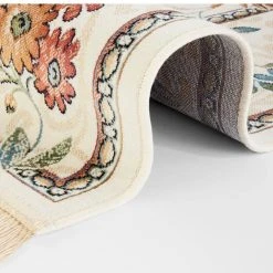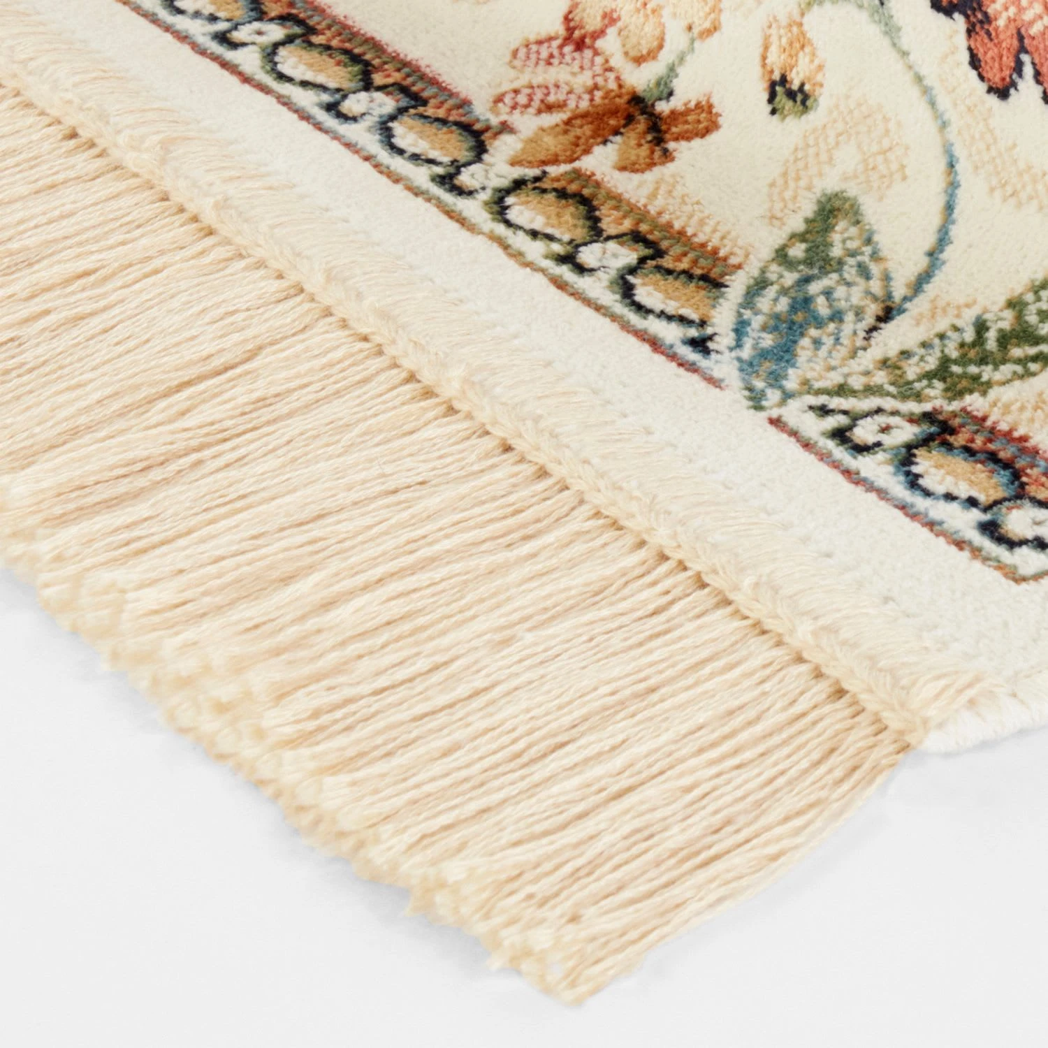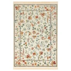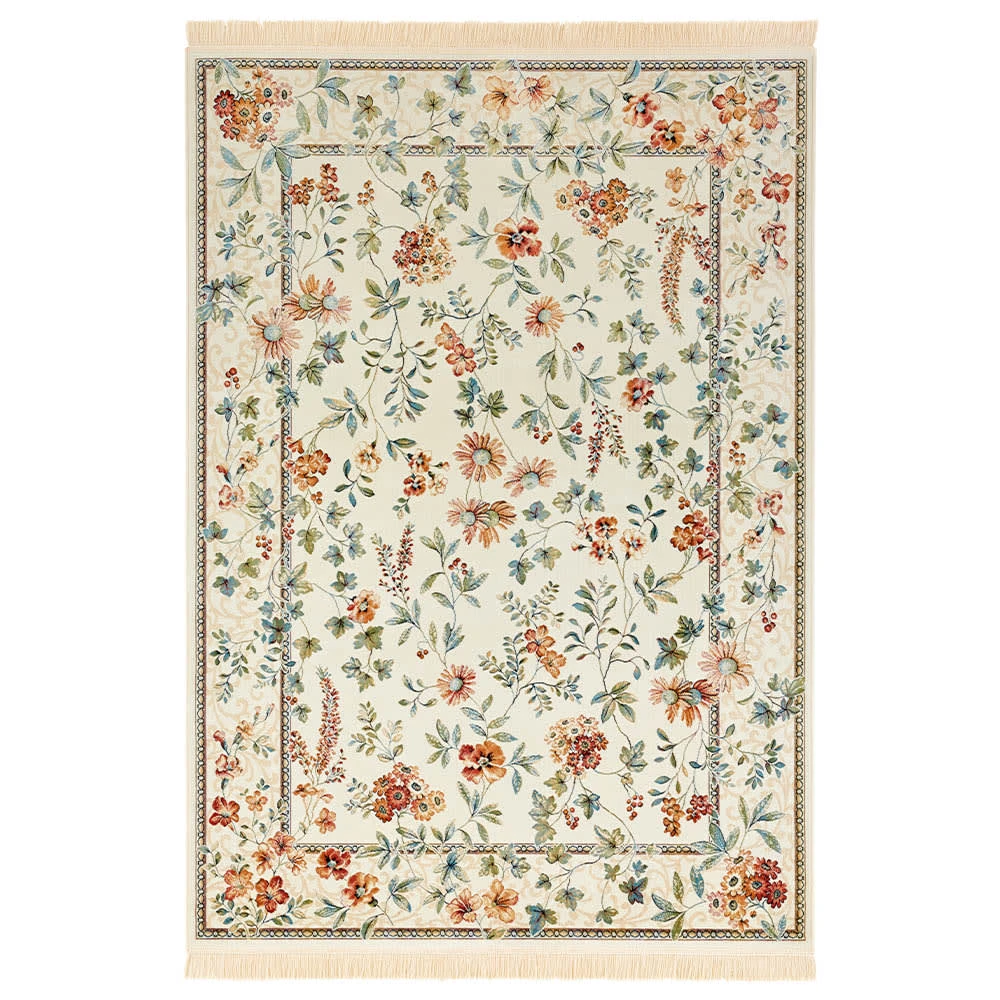 Nouristan Orientalischer Samt-Teppich Fransen Oriental Flowers Creme