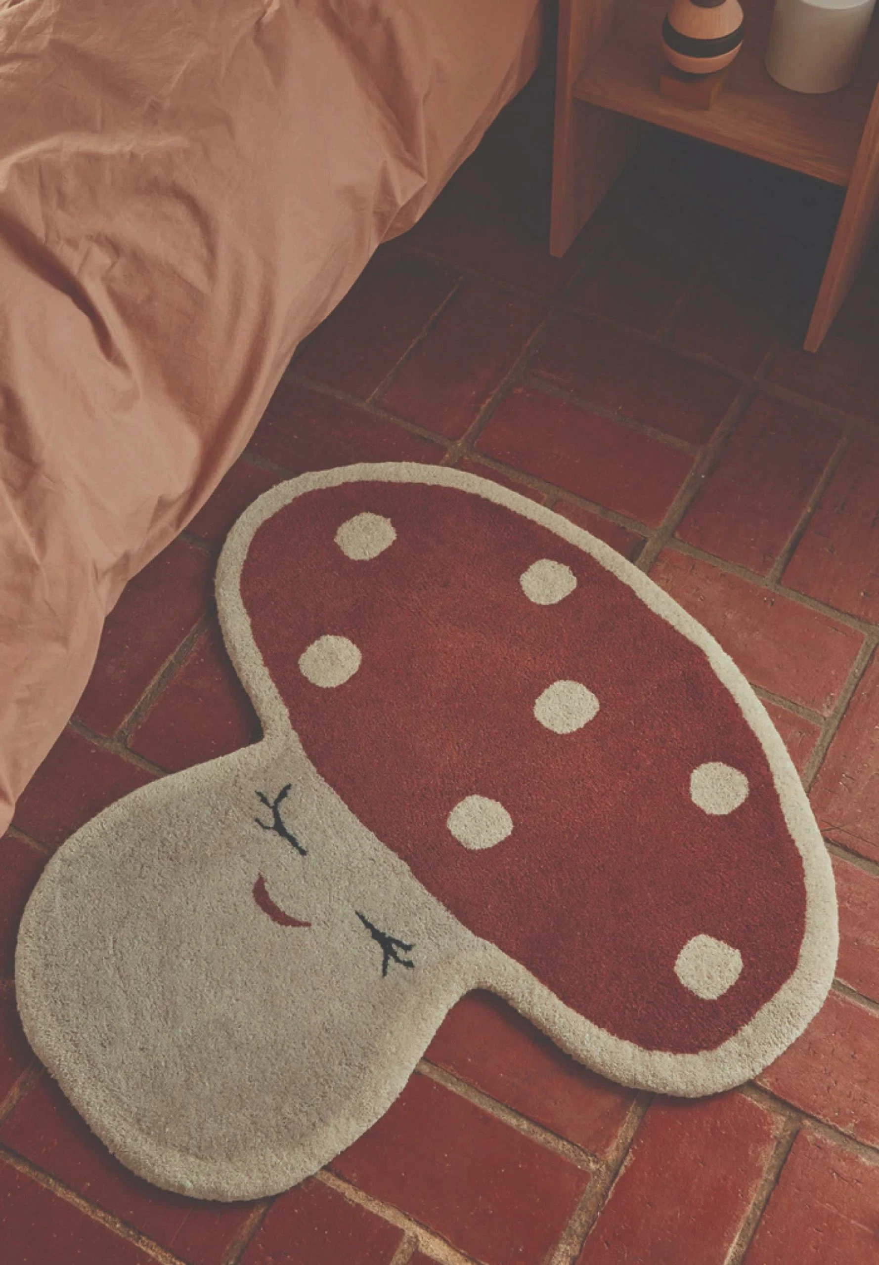 Halten Sie kleine Füße warm mit dem niedlichen Malle Mushroom Rug. Der Teppich lädt zu vielen Stunden Spaß im Kinderzimmer ein. Mit seinem süßen und verspielten Ausdruck wird der Teppich zum perfekten Accessoire.Der Teppich ist in einer getufteten Qualität gefertigt und besteht aus Wolle und Baumwolle.