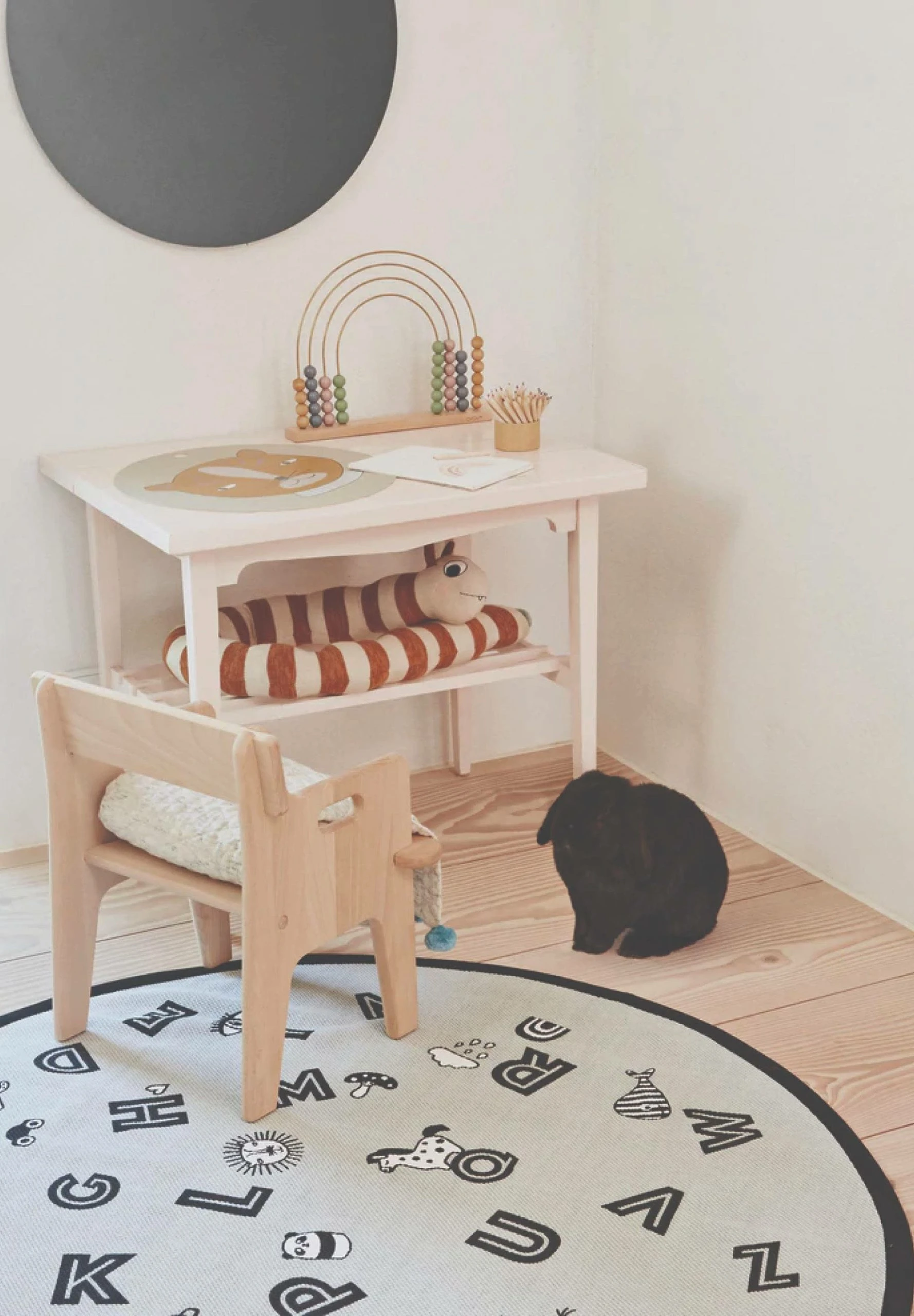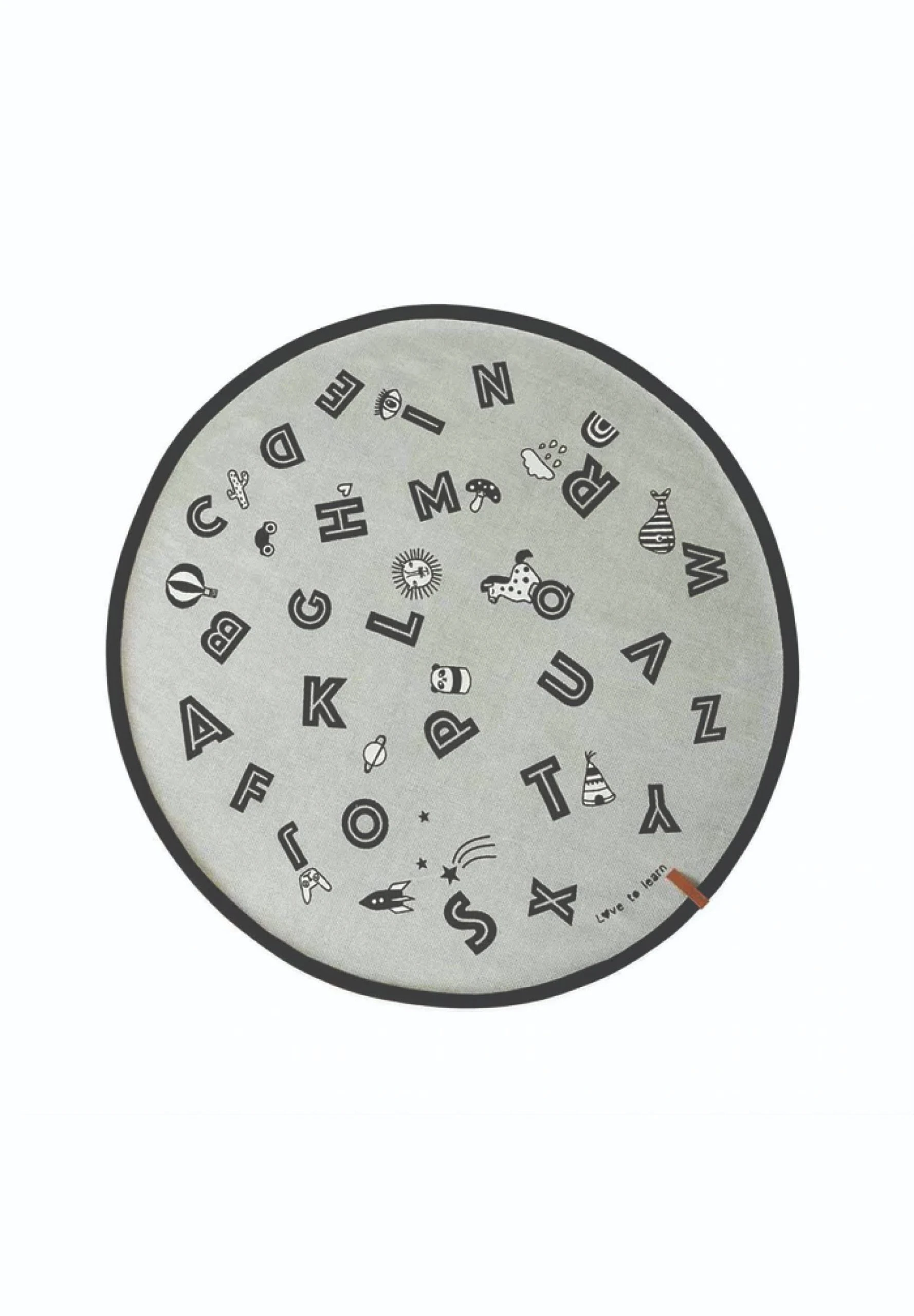 Mit seiner hellgrauen Farbgebung und den niedlichen Illustrationen ist der Alphabet-Teppich ein bezauberndes Accessoire für das Kinderzimmer. Der Teppich ist aus Baumwolle, bedruckt. Zur Reinigung wird empfohlen, ihn mit einem feuchten Tuch abzuwischen – nur punktuell reinigen. Seien Sie vorsichtig bei der Reinigung, da die schwarze Druckfarbe bei zu intensiver Reinigung beschädigt werden kann.