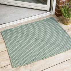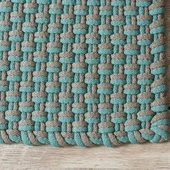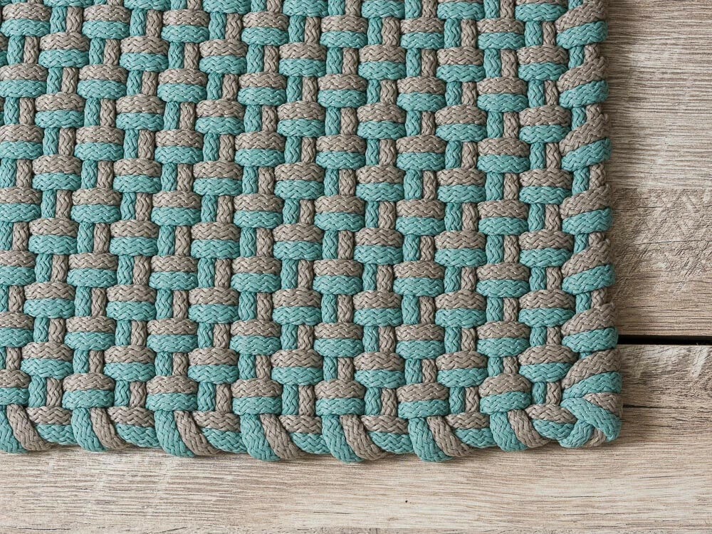 Der Pad Teppich ist einem edlen türkis-beigen Farbton gehalten, und die Struktur des Teppich wird durch das dicke Fasergarn geprägt. Dank seines zeitlos schlichten Erscheinungsbildes lässt sich der Outdoor Teppich in nahezu jeden Wohnstil integrieren.
