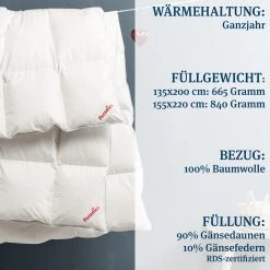– Füllung aus 90% Gänsedaunen und 10% -federn, Klasse I: bauschig und kuschelig für einen besonders erholsamen und kuscheligen Schlaf