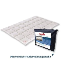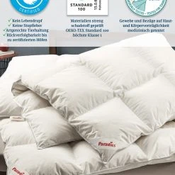 Die Daunendecke ist mit vollausgereiften, RDS geprüften weißen, neuen Paradies Gänsedaunen – und federn in Klasse I gefüllt. Umhüllt wird die Füllung mit einer feinen Baumwoll-Einschütte (100% Baumwolle).