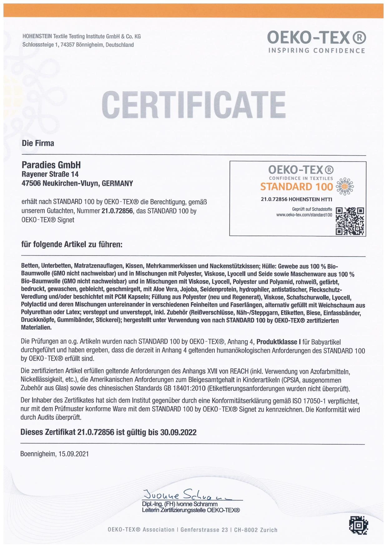 – OEKO-Tex® Standard 100, Klasse I (höchster Standard): Materialien streng schadstoffgeprüft