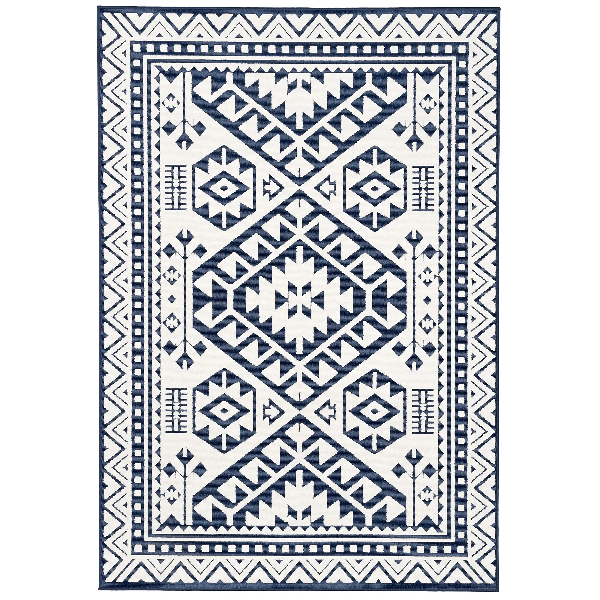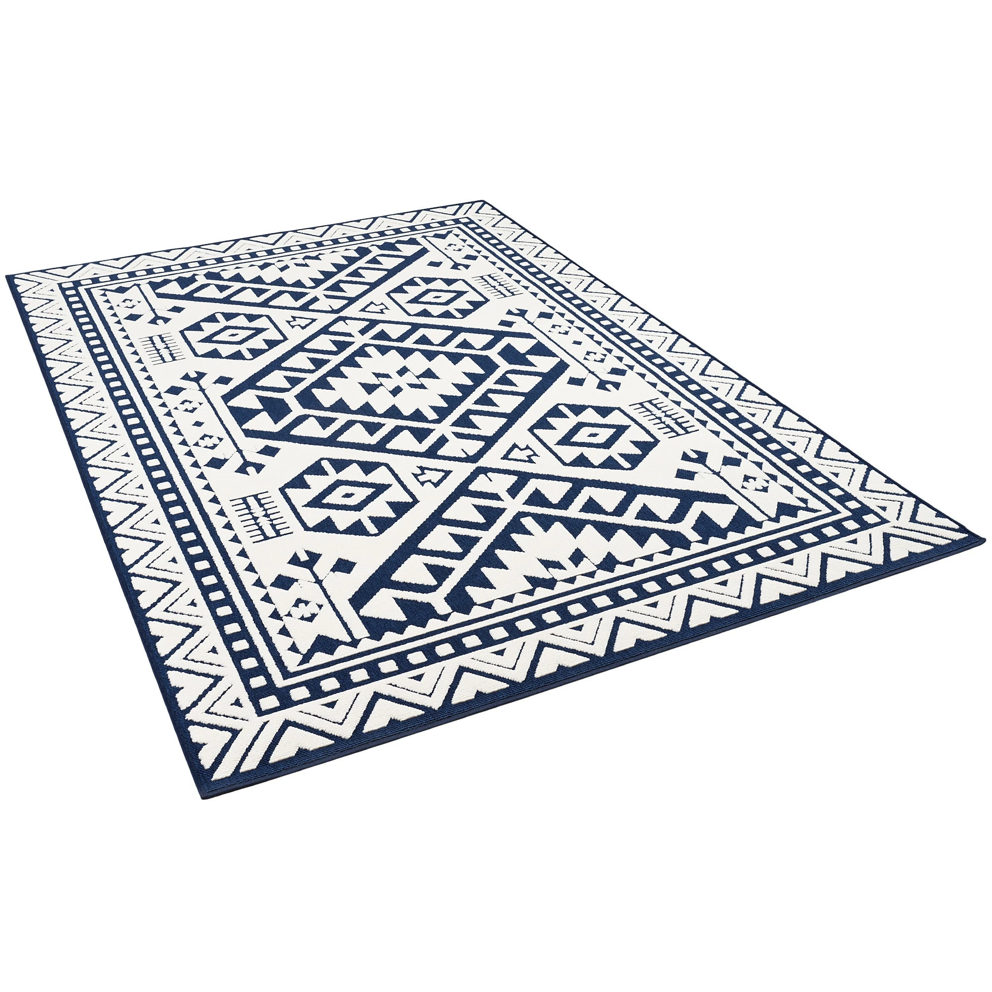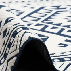 Pergamon In- Und Outdoor Teppich Santorin Ethno Bordüre In Blau