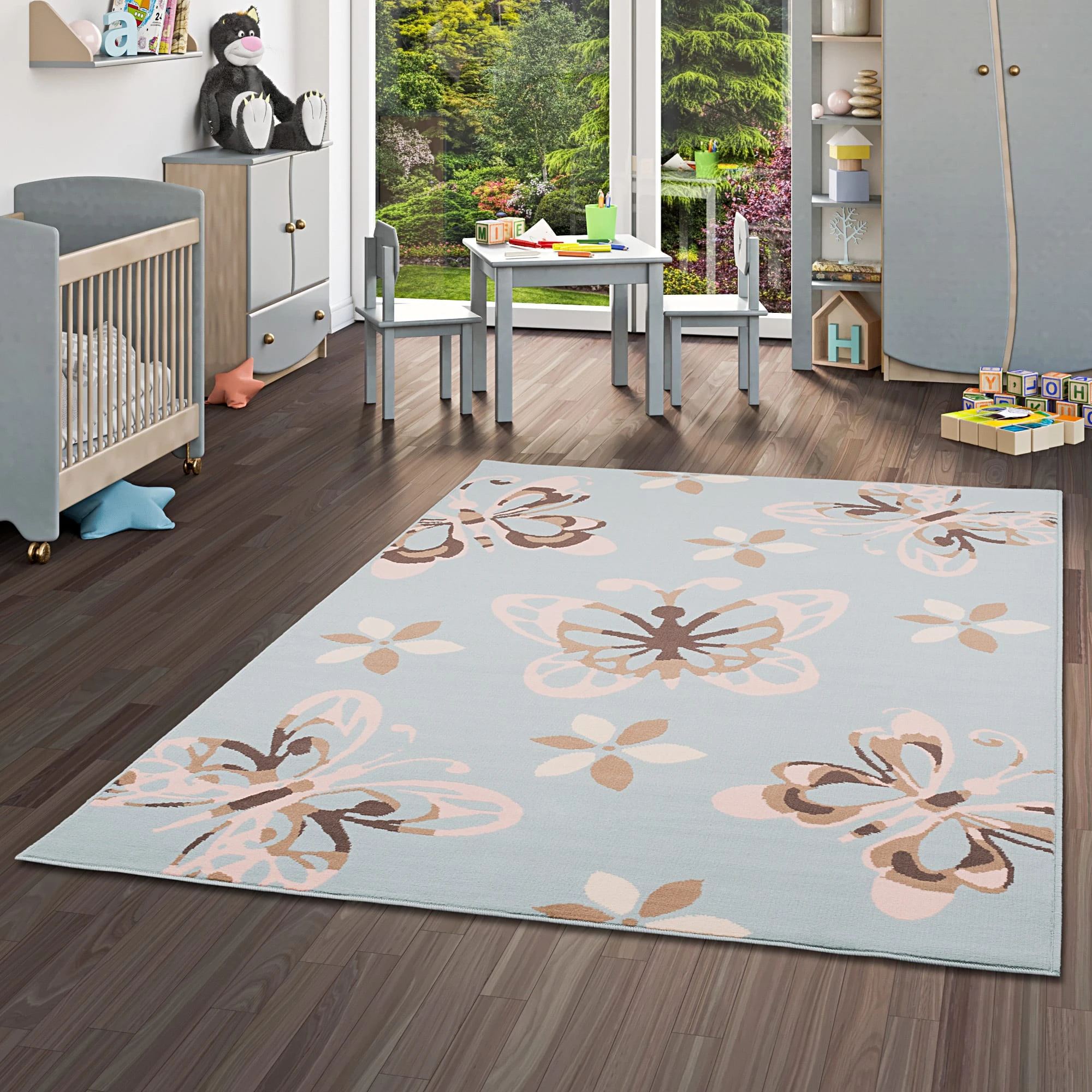 Pergamon Kinderteppich Trendline Schmetterling Pastell In Blau