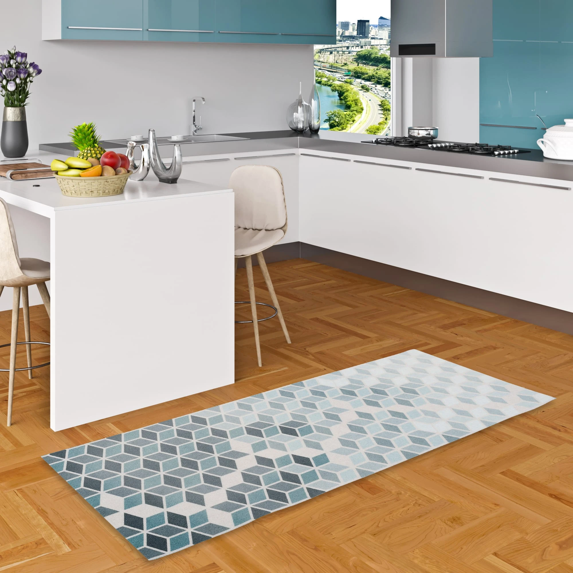 Trendy lässt Ihnen jede Freiheit zum dekorativen Einsatz. In allen Wohnbereichen, im Flur oder sogar draußen vor der Tür kann er zum Einsatz kommen, denn Schmutz darauf ist leicht zu entfernen und Ihr Zuhause bleibt sauber. Bei Bedarf kann der Küchenläufer Trendy einfach bei 30° (Handwäsche) gereinigt werden. Der Teppichläufer ist in zwei Größen verfügbar und gibt anhand der diversen Designs allen Räumen einen wohnlichen Charakter.