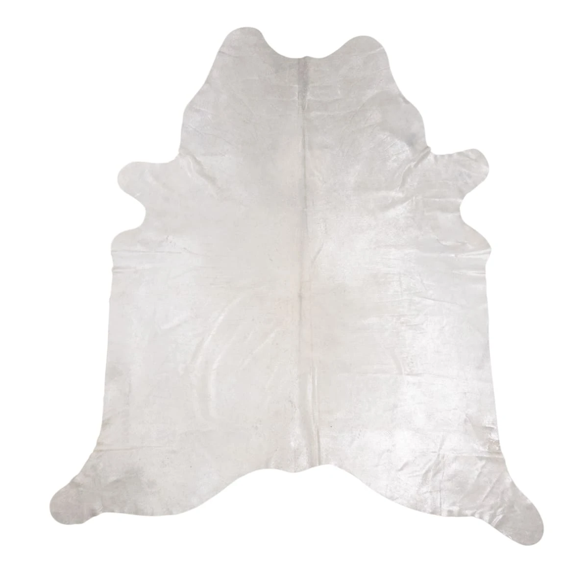 Stylisches Rinderfell mit silberfarbener Oberflächen-Veredelung.