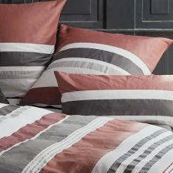 REDBEST Satin Bettwäsche. Das modern inszenierte Streifenmuster ist ein lebhafter Blickfang, es setzt neue Impulse in Ihrem Ambiente und lädt zum Träumen ein. Gerne kuscheln Sie sich in den feinfädigen, sinnlichen Stoff aus gekämmten und mercerisierten Garnen, er ist ein hautschmeichelnder Genuss. Lassen Sie sich vom edlen Schimmer und dem glatten, seidigen Griff betören. Einfach zu beziehen durch den praktischen Reißverschluss.