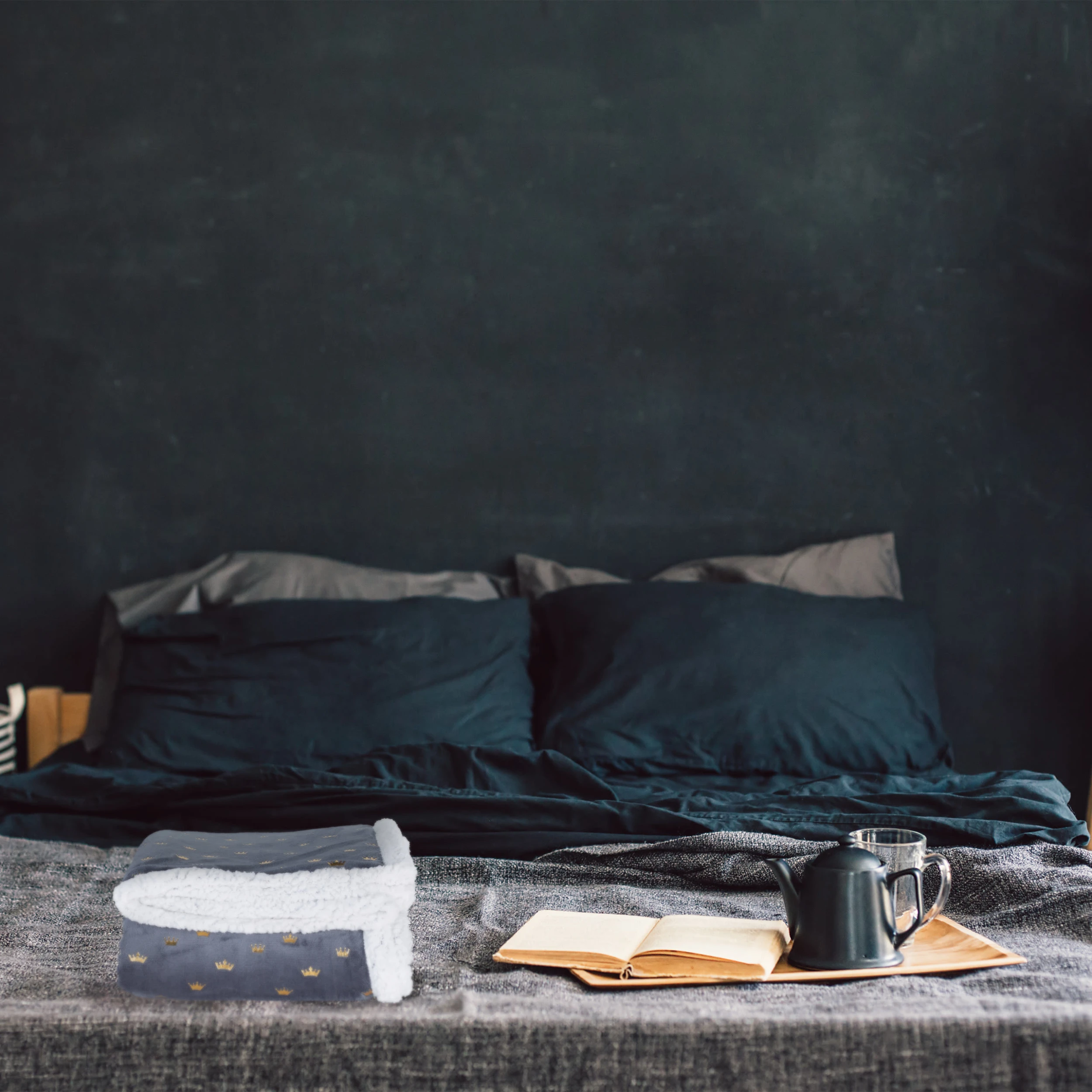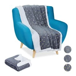 Was gibt es in der kalten Jahreszeit Besseres, als sich nach einem langen Arbeitstag mit einer Tasse Tee oder einer heißen Schokolade auf der Couch einzukuscheln? Die flauschige Wohndecke in Grau mit dekorativen goldenen Prints ist da genau das richtige Accessoire. Mit ihrer Unterseite in weißer Lammfelloptik spendet sie angenehme Wärme und sorgt für behagliche Gemütlichkeit. Auch für laue Sommerabende auf der Terrasse oder gemeinsame Abende unter dem Sternenhimmel ist die Flauschdecke ideal.