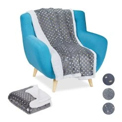 Was gibt es in der kalten Jahreszeit Besseres, als sich nach einem langen Arbeitstag mit einer Tasse Tee oder einer heißen Schokolade auf der Couch einzukuscheln? Die flauschige Wohndecke in Grau mit dekorativen goldenen Prints ist da genau das richtige Accessoire. Mit ihrer Unterseite in weißer Lammfelloptik spendet sie angenehme Wärme und sorgt für behagliche Gemütlichkeit. Auch für laue Sommerabende auf der Terrasse oder gemeinsame Abende unter dem Sternenhimmel ist die Flauschdecke ideal.