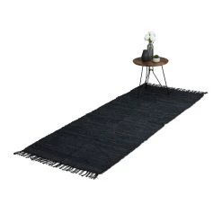 – In Handarbeit gefertigter Teppichläufer aus Baumwolle und Leder