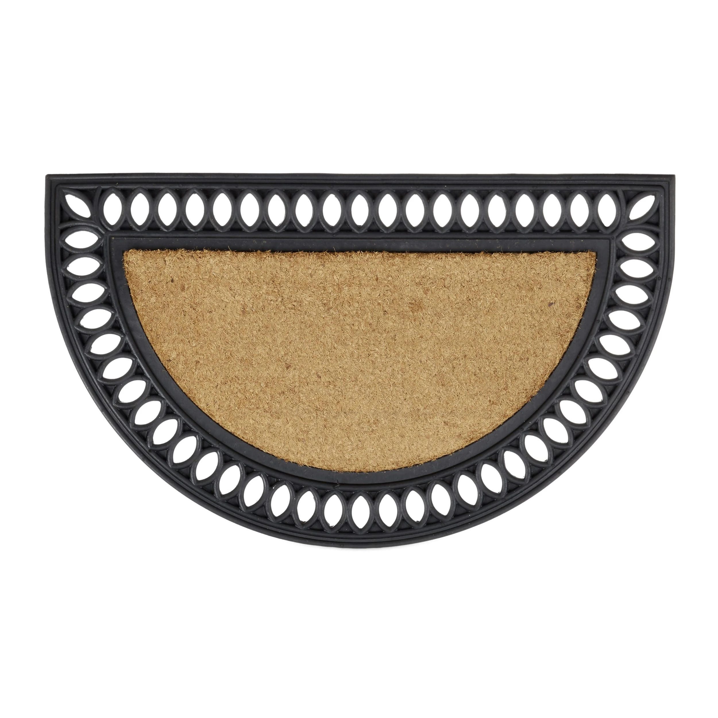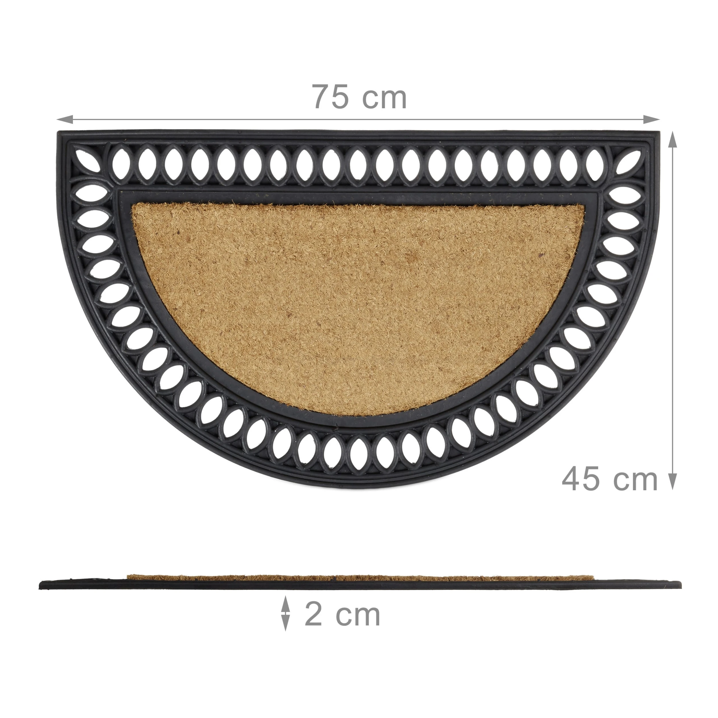 Rutschfest, witterungsbeständig und dekorativ zugleich – die halbrunde Fußmatte aus Kokos ist ein echtes Allround-Talent. Die pflegeleichten Eigenschaften der natürlichen Kokosfasern werden kombiniert mit robustem, langlebigen Gummi. Der Fußabtreter rutscht auch bei nassem Boden nicht weg, platzieren Sie die Matte einfach vor der Haus- oder Balkontür, im Wintergarten oder in der Werkstatt. Auch Regen und Schnee laufen einfach ab.