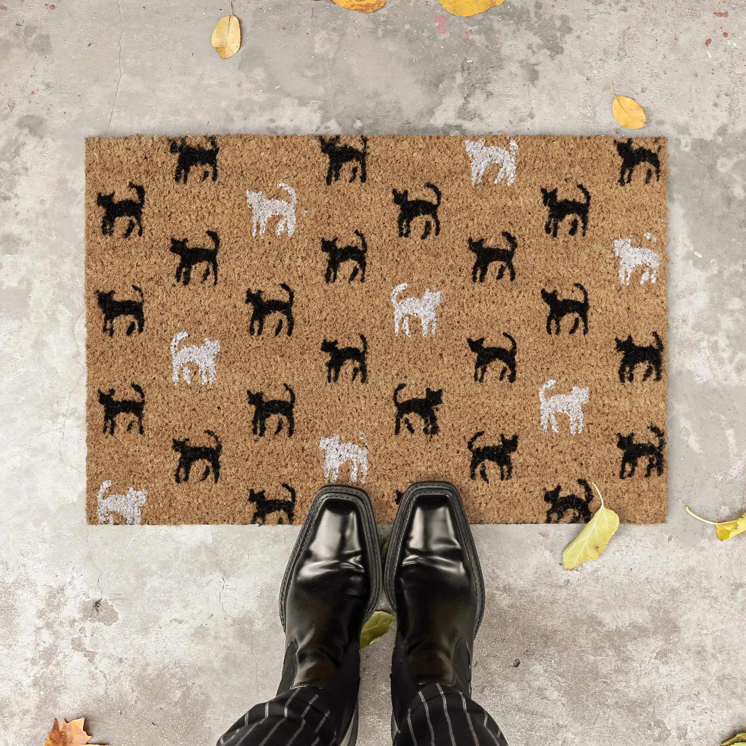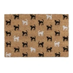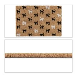 Diese Fußmatte mit niedlichem Katzenmotiv wird Deine Besucher schon im Eingangsbereich begeistern. Die nachhaltigen und langlebigen Kokosfasern des Fußabtreters sorgen dafür, dass Deine Wohnung sauber bleibt und der Dreck draußen. Dank der PVC-Beschichtung der Unterseite bleibt der Schmutzfänger an seinem Platz, auch wenn die Schuhe stark abgetreten werden müssen. Ein praktisches und hübsches Dekoelement für Wohnung, Haus und Garten.
