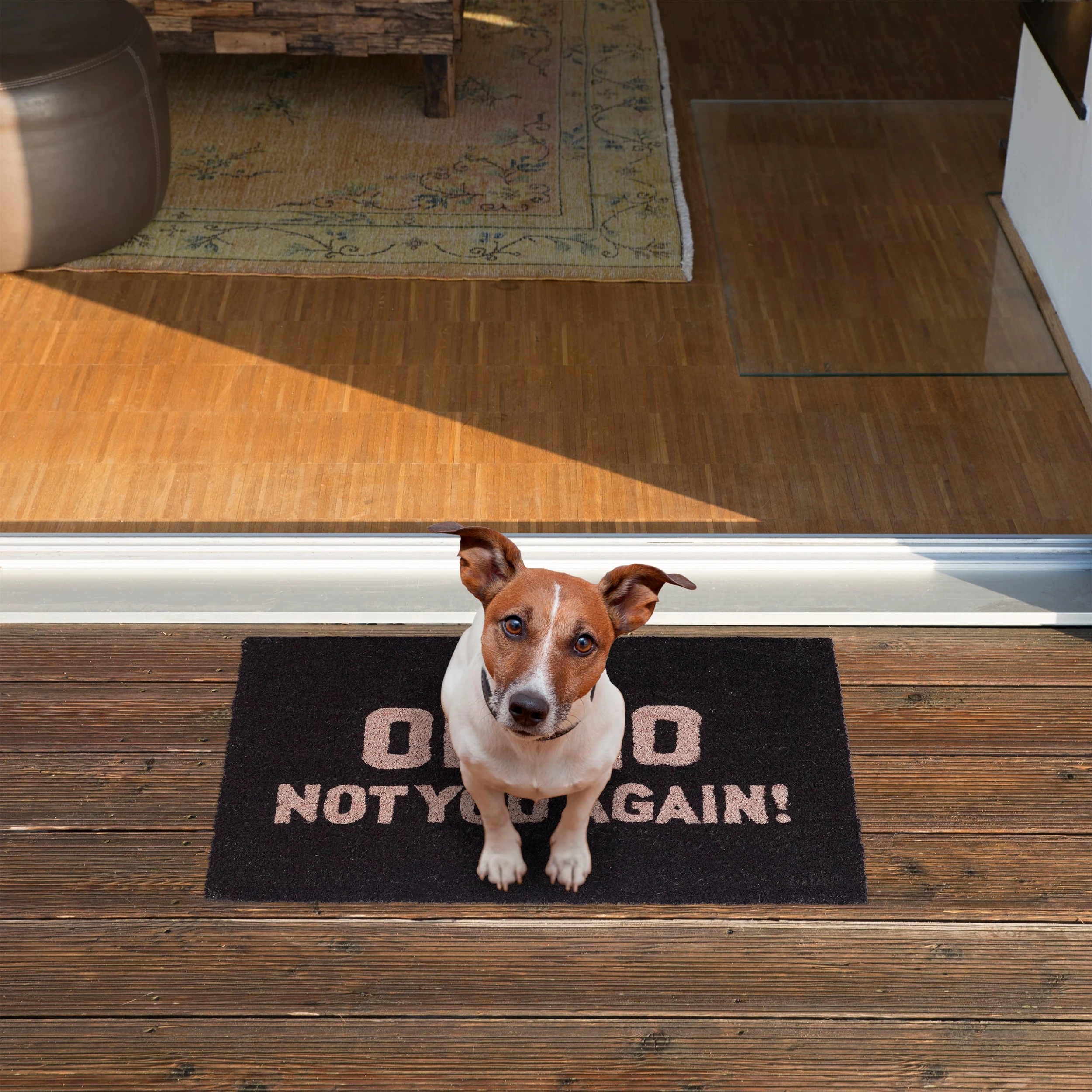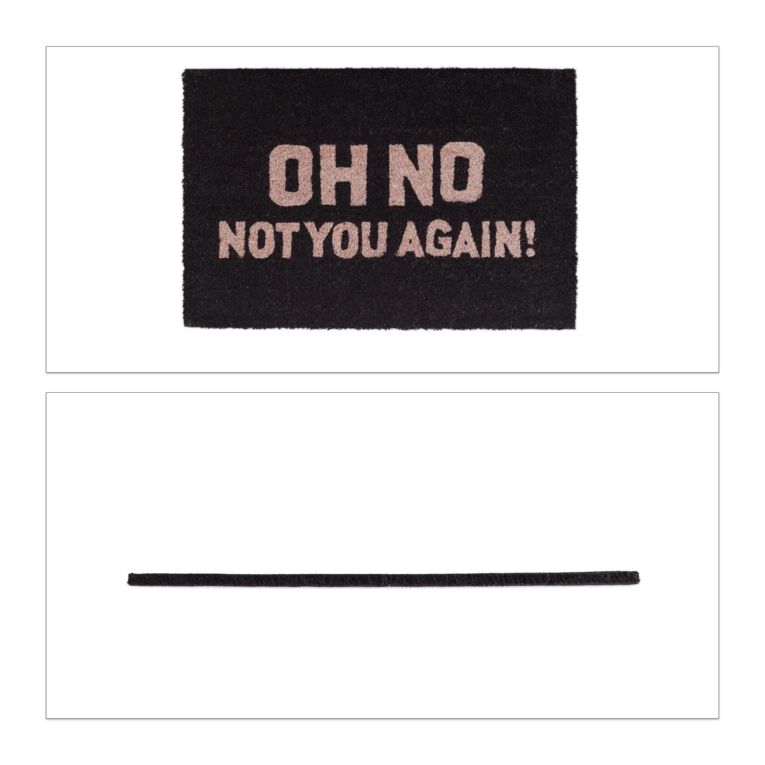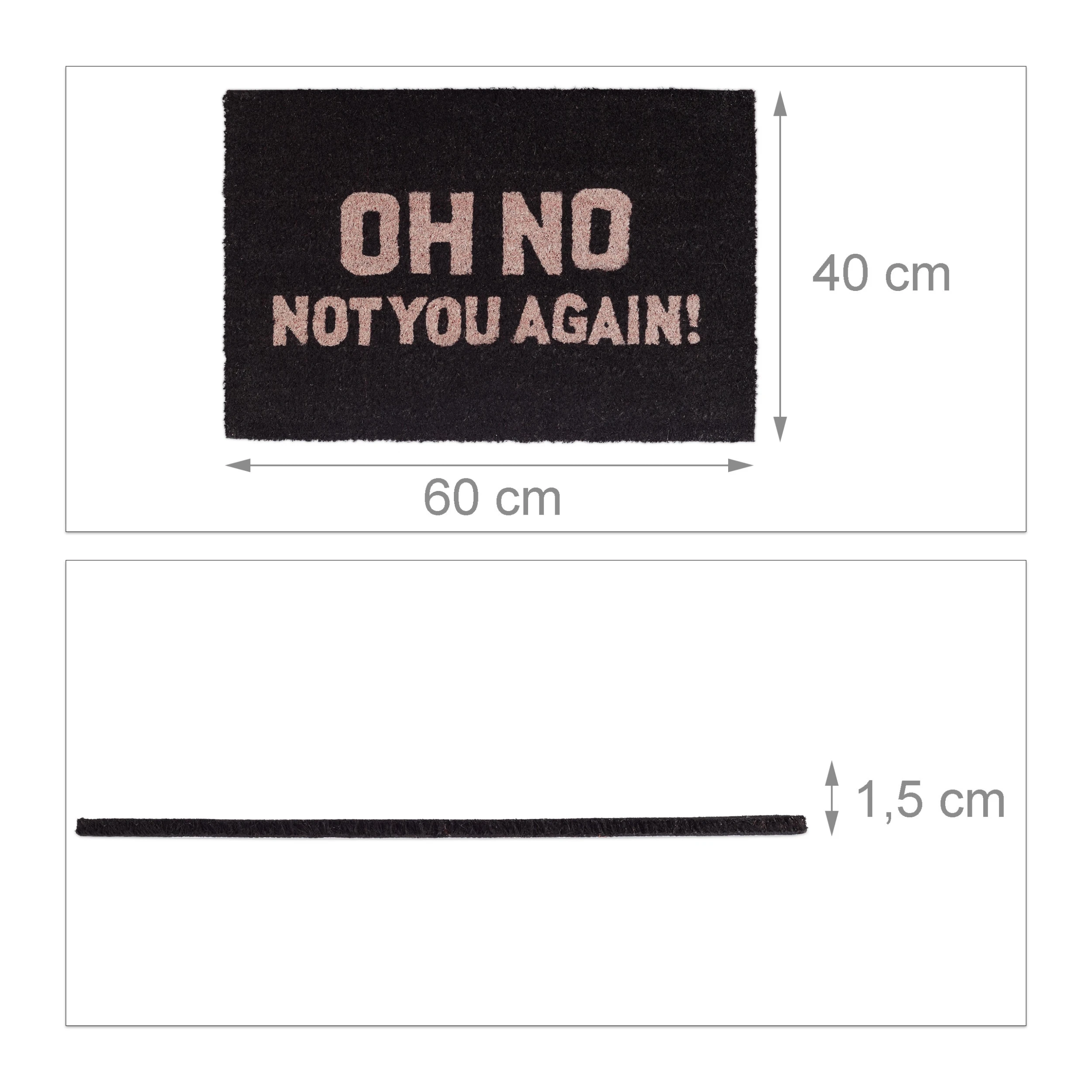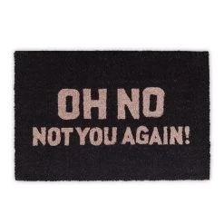 Diese Fußmatte hilft Ihnen nicht nur dabei, Ihren Flur, die Garage oder den Wintergarten sauber zu halten, sondern ist auch ein echter Hingucker. Dafür sorgen die Kokosfasern mit ihrer natürlich groben Struktur, die als robustes, nachhaltiges und umweltfreundliches Material überzeugen. Der freche Spruch Oh No Not You Again bringt Ihre Gäste garantiert zum schmunzeln. Auch im Außenbereich macht sich der wasserfeste Fußabstreifer gut. Um die Willkommensmatte zu reinigen, müssen Sie das gute Stück nur ausklopfen. Für einen festen Stand sorgt die rutschfeste Unterseite aus Gummi.