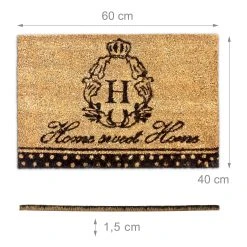 Die pflegeleichten Kokosfasern sind sehr robust und widerstandsfähig. Sie stammen aus natürlich nachwachsendem Rohstoff. Dies macht sie sehr umweltfreundlich und nachhaltig. Die Unterseite der Schmutzfangmatte ist aus feuchtigkeitsabweisendem Gummi. Dieser verhindert auch, dass die Fussmatte bei der Benutzung wegrutscht. Die Standardgröße eignet sich für fast alle Türbereiche. Auf der rechteckigen Form haben Sie viel Platz, um Ihre Füße abzutreten.