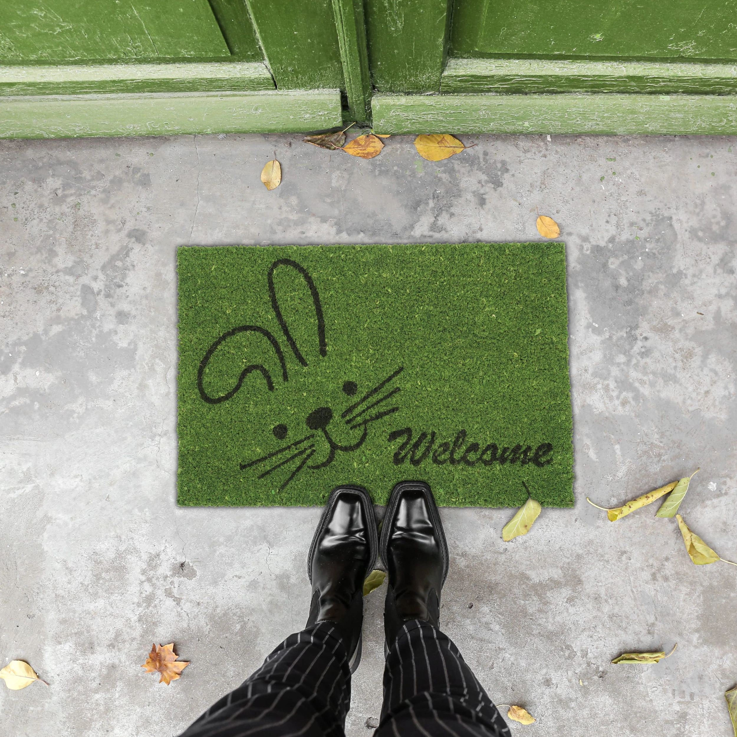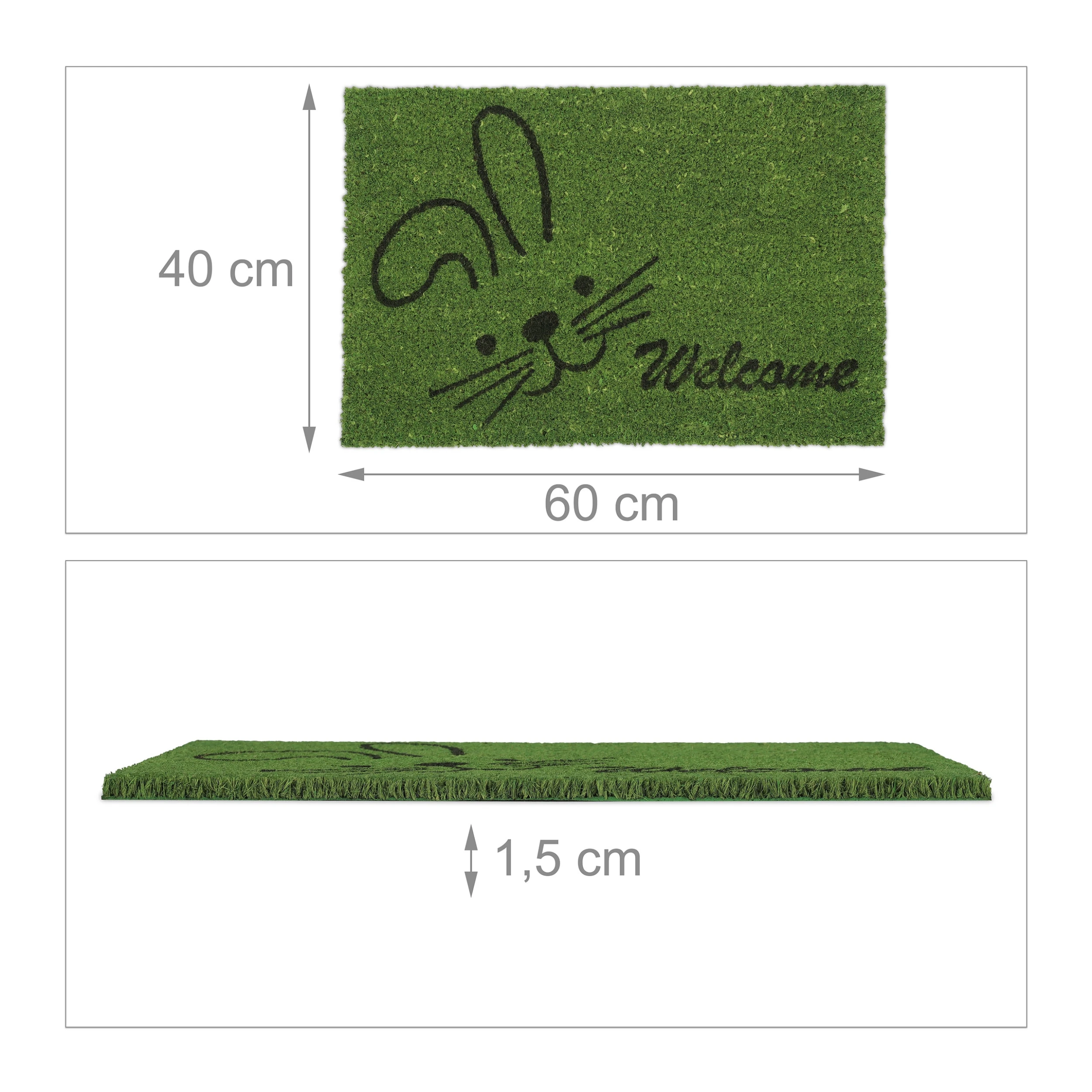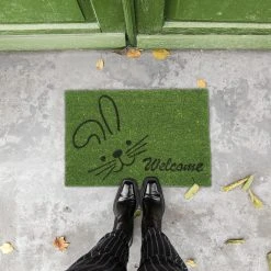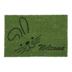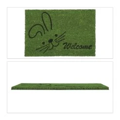 Mit dieser dekorativen Haustürmatte verleihst Du Deinem Eingangsbereich einen einladenden Look und sorgst für saubere Innenräume. Doch der grüne Schmutzabtreter punktet nicht nur mit seinem Welcome- und Hasen-Motiv. Durch die natürlichen Kokosfasern ist die Türmatte robust und wetterfest und kann sowohl drinnen als auch draußen genutzt werden. Die Unterseite des Fußabstreifers besteht aus rutschfestem PVC, sodass der Schuhabtreter an seinem angestammten Platz bleibt.