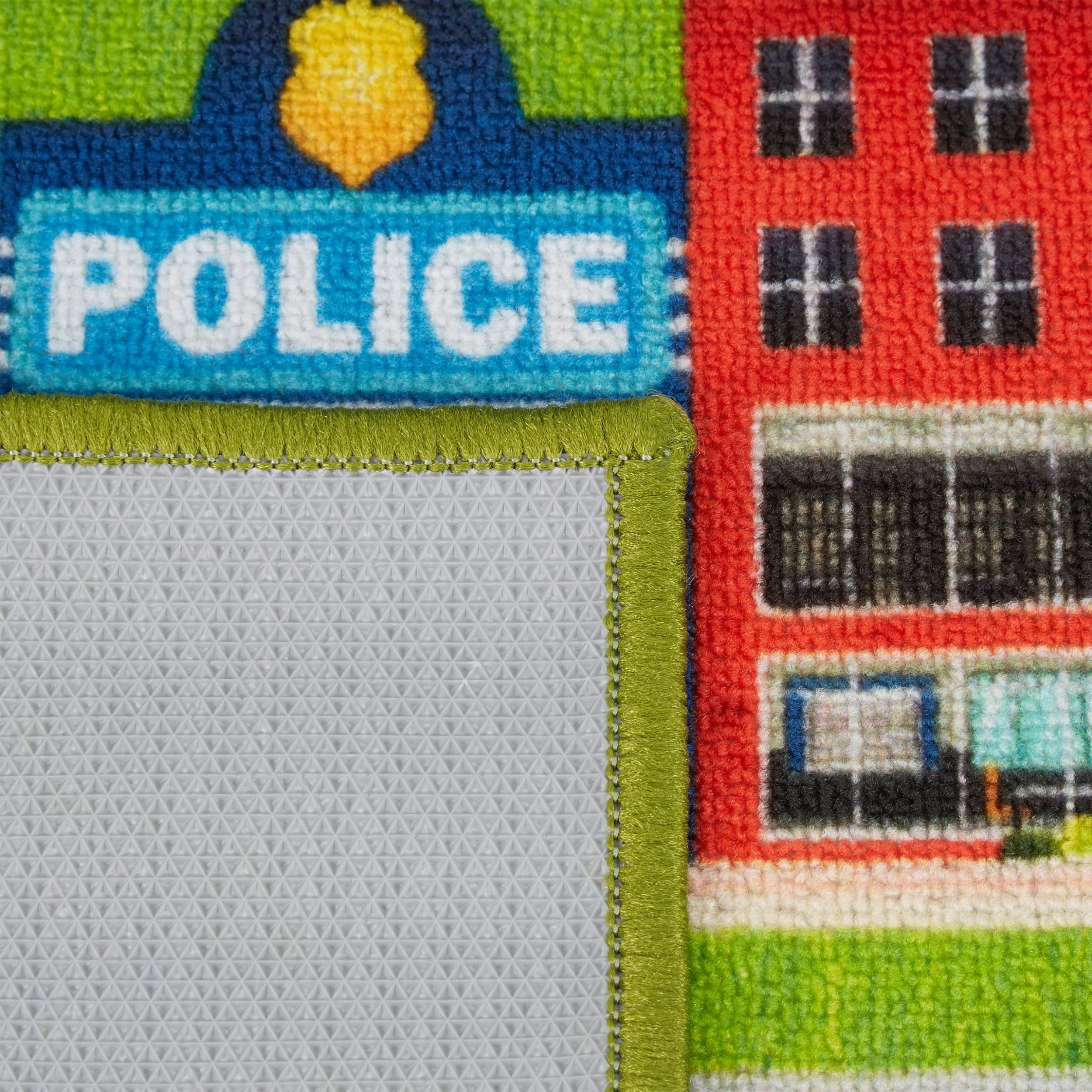 Sorgen Sie mit diesem Spielzeugteppich für leuchtende Kinderaugen. Der weiche Teppich bildet alle wichtigen Gebäude einer Kleinstadt ab. Auf der zweispurigen Straße können Jungen und Mädchen mit einem Spielzeugauto u.a. zur Post, der Polizei, dem Flughafen oder zum Bahnhof fahren. Dort angekommen gibt es eine Zugstrecke, die einmal komplett um den Verkehrsteppich herumführt. Dabei ist der Autospielteppich aus Polyester rutschfest und kann bei Nichtgebrauch platzsparend zusammengerollt werden.