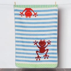 Richter Jacquard Bio Babydecke. Süße Frösche zieren die kuschelweiche Decke. Sie ist ein praktischer Begleiter, in den sich Ihr kleiner Schatz gerne hineinkuschelt. Zuhause, unterwegs, auf Reisen oder im Auto, die vielseitige leichte Decke ist ein Genuss. Ihre natürliche Qualität ist mollig warm und sorgt für ein wohliges Gefühl auf der empfindlichen Babyhaut. Selbst der hohe GOTS-Standard wird von dem ausgezeichneten Material aus kbA-Baumwolle (kbA = kontrolliert biologischer Anbau) erfüllt. Der feinfädige Velours ist atmungsaktiv, strapazierfähig und temperaturausgleichend. Rundum mit attraktivem Zierstich eingefasst.