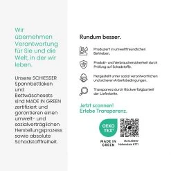 Die Schiesser Spannbettlaken bestehen zu 100% aus gekämmter Baumwolle in edler Jersey Qualität und sind bei 60°C waschbar und trocknergeeignet. Sie garantieren eine hohe Strapazierfähigkeit und Schutz vor dem Einlaufen.