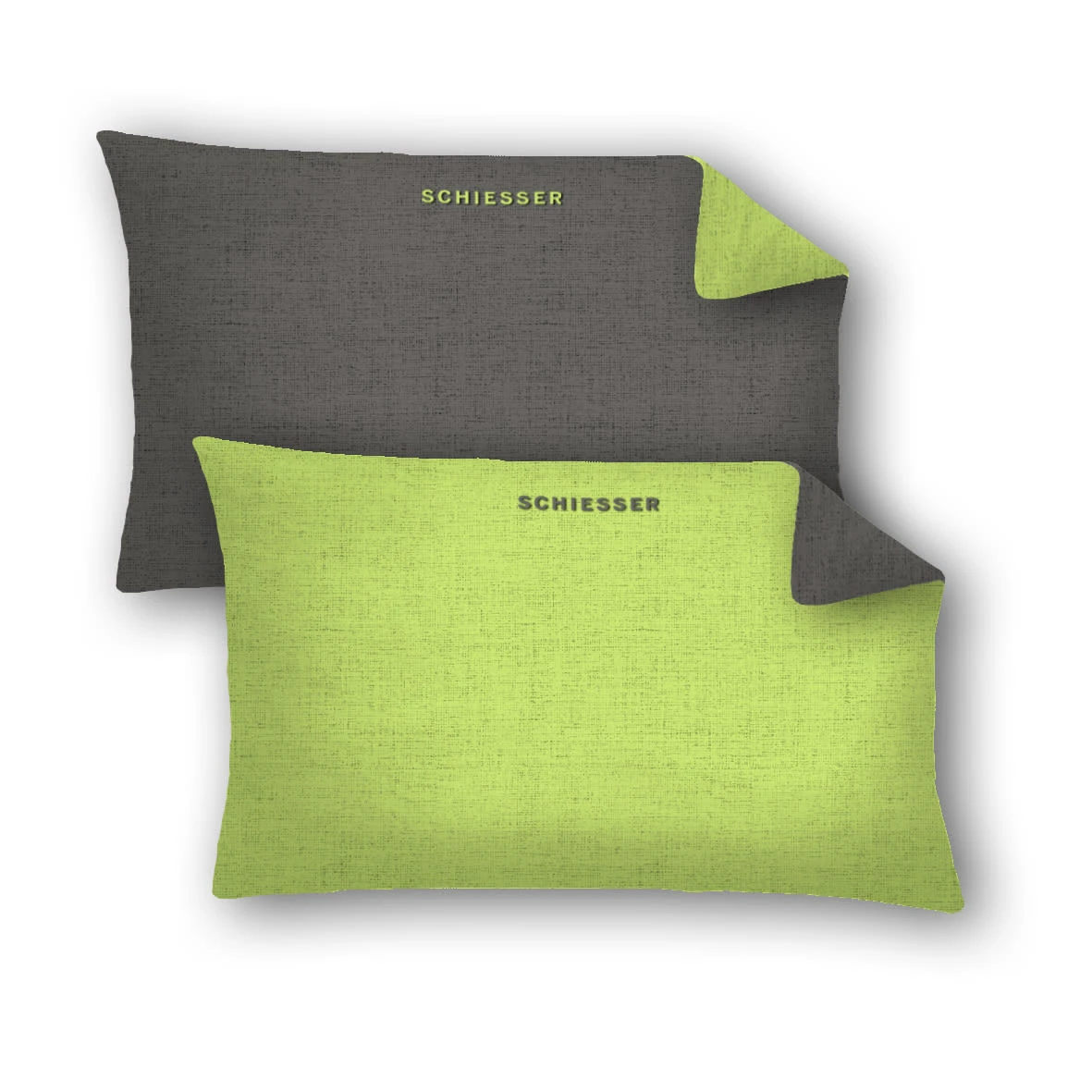 Unsere Doubleface Kissenhüllen im 2er Pack aus dem Hause Schiesser in der Größe 40 x 80 cm sind mit einer hochwertigen Schiesser-Logo-Stickerei versehen und überzeugen durch ihren eleganten Melange-Effekt.