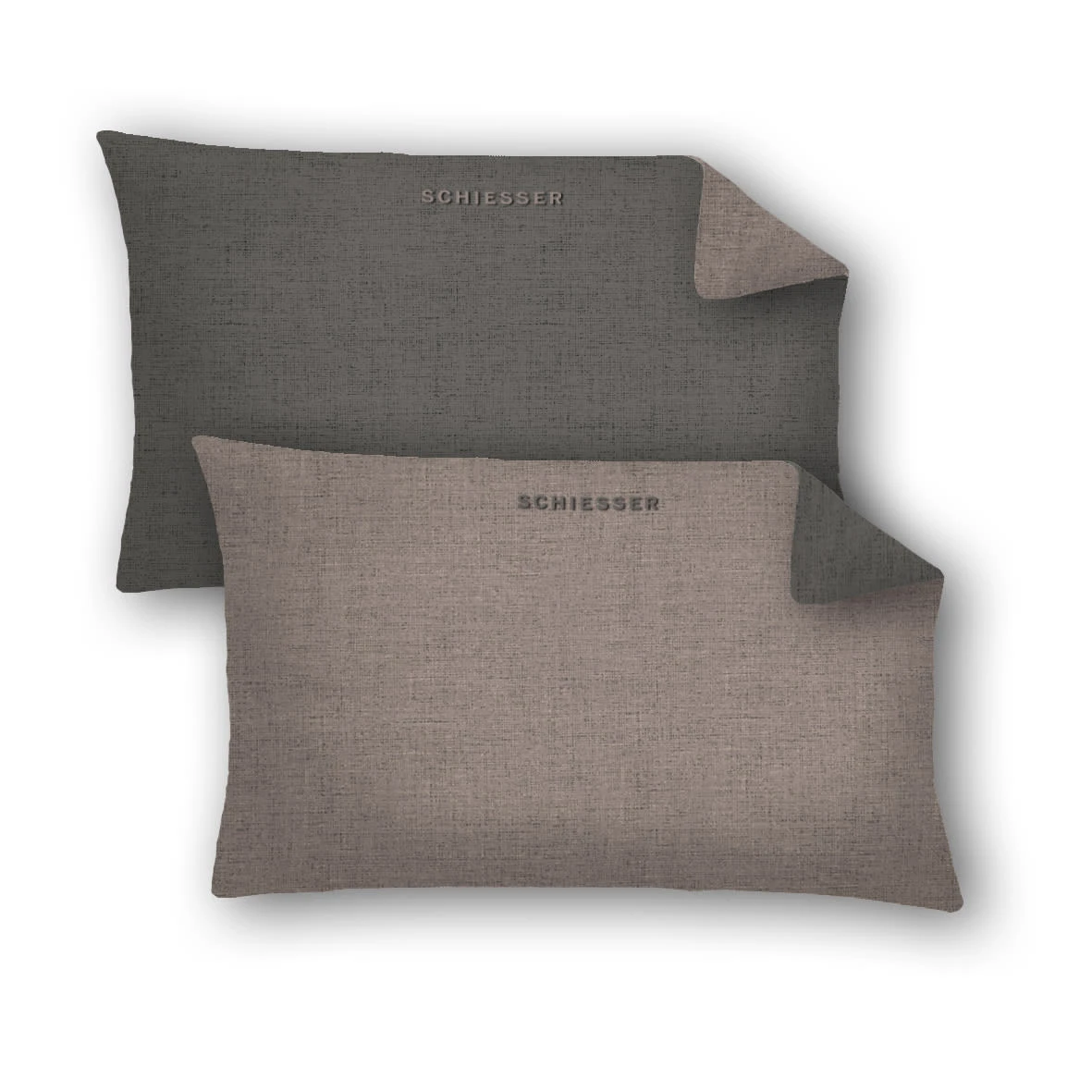 Unsere Doubleface Kissenhüllen im 2er Pack aus dem Hause Schiesser in der Größe 40 x 80 cm sind mit einer hochwertigen Schiesser-Logo-Stickerei versehen und überzeugen durch ihren eleganten Melange-Effekt.