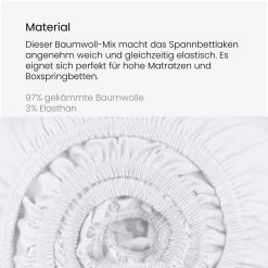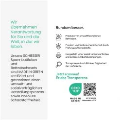 Es passt auch auf hohe Matratzen und ist sogar für Wasser- und Boxspringbetten geeignet. Dank des hochwertigen Rundumgummis bleibt das Spannbetttuch da, wo es hingehört, unschöne Falten gehören mit Elli der Vergangenheit an. Elli wurde zudem fair und nachhaltig und somit umwelt- und sozialverträglich für Sie hergestellt.
