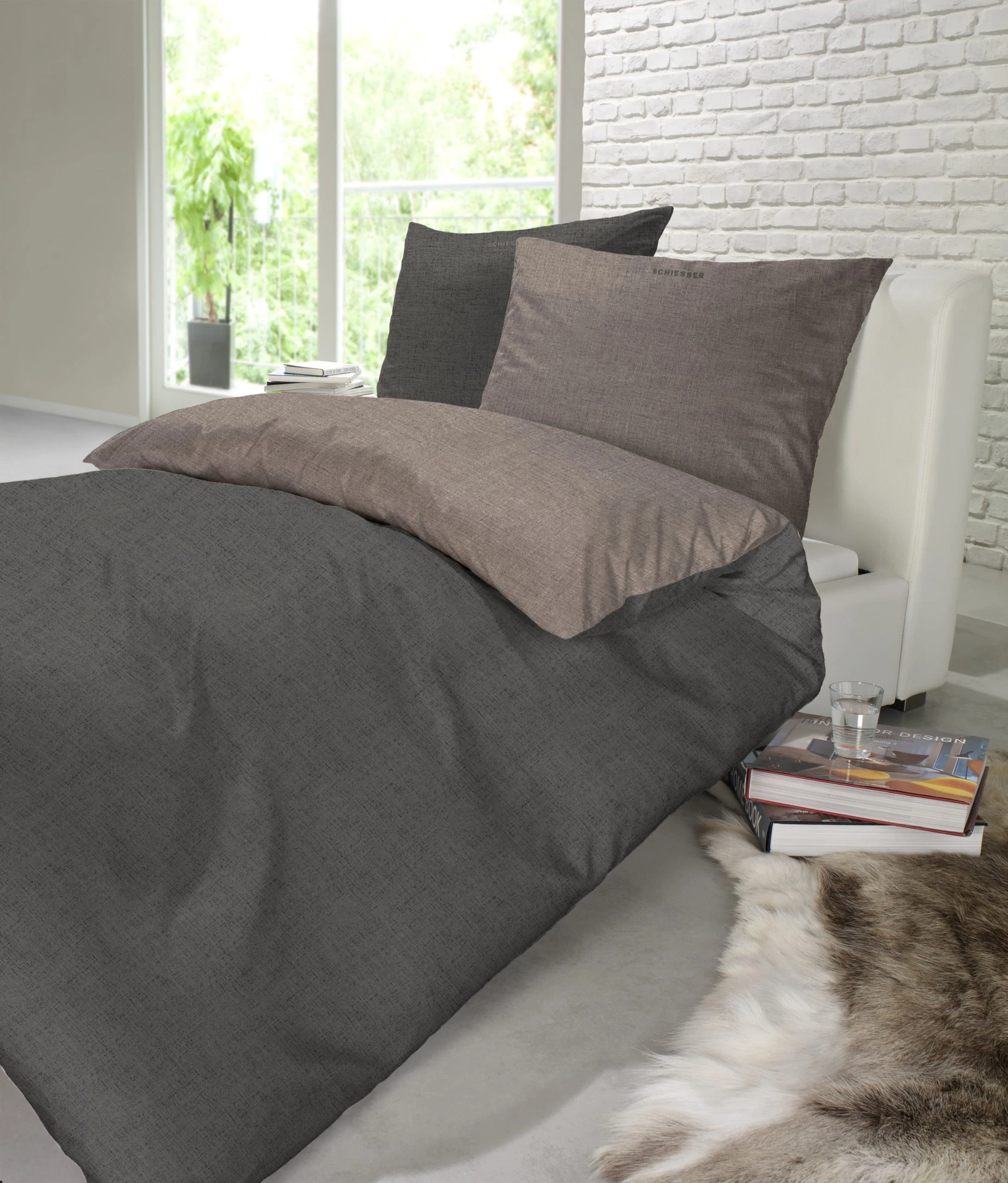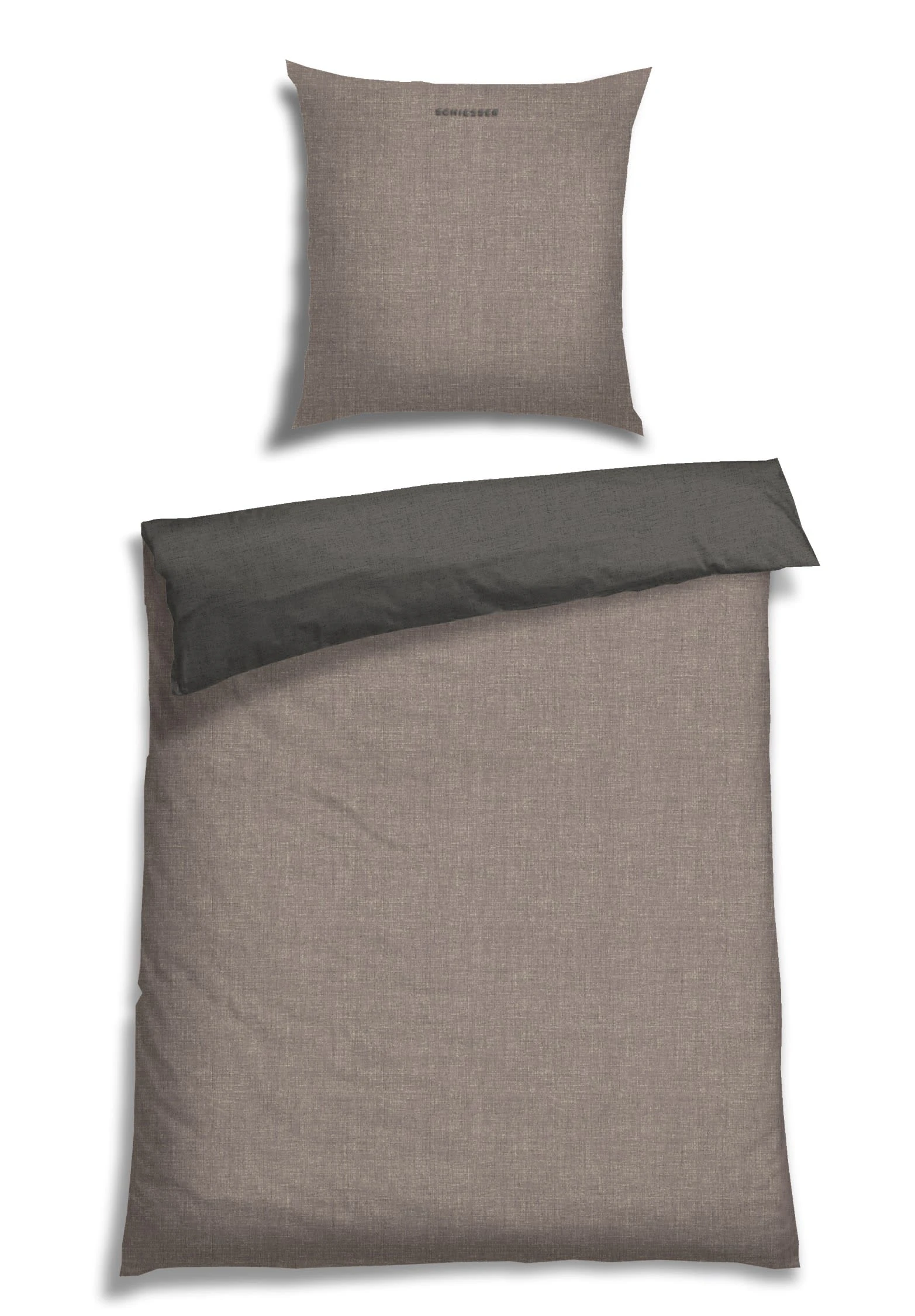 Unsere Doubleface Wendebettwäsche aus dem Hause Schiesser beinhaltet einen Kissenbezug in der Größe 80x80cm mit hochwertiger Schiesser-Logo-Stickerei und einen Bettbezug in der Größe 135x200cm oder 155x220cm. Zu unserem Bettbezug in der Größe 200×220 cm erhalten Sie zwei Kissenbezüge in der Größe 80×80 cm.