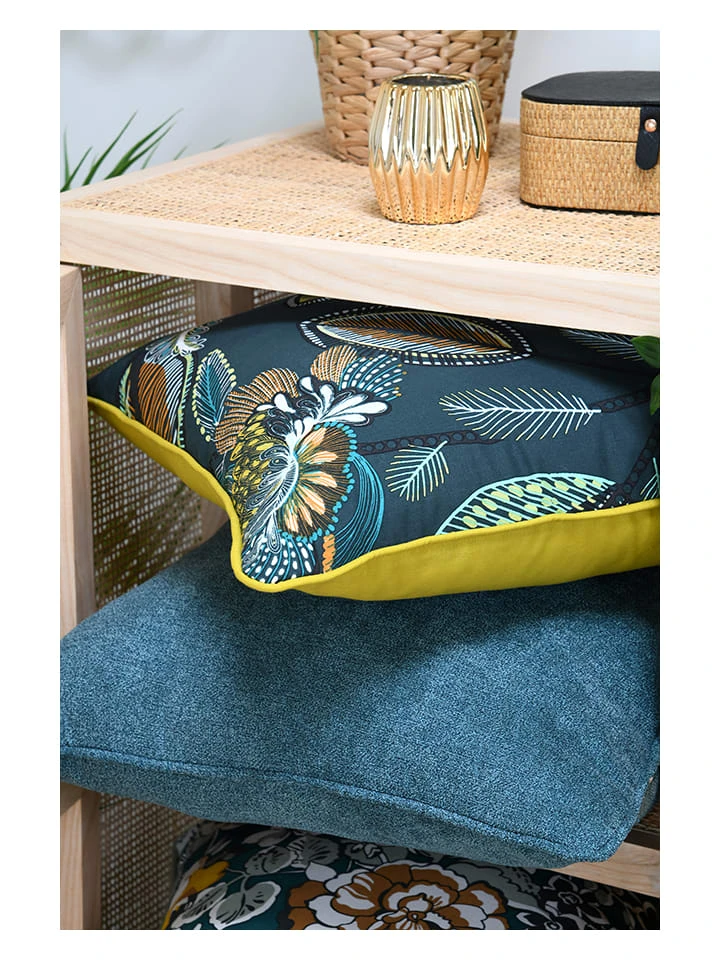 STOF France Kissen “Quadro” In Weiß/ Hellblau/ Gold – (L)40 X (B)40 Cm