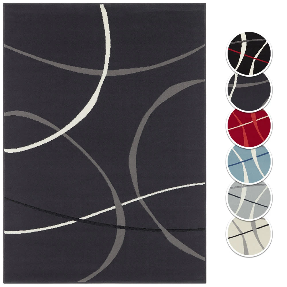 Dieser attraktive Design Teppich wird Ihrem Wohnbereich eine erfrischende Atmosphäre verleihen. Die schwungvollen teilrunden Streifen Muster machen diesen Wohnraumteppich zu einem echten Hingucker in Ihren Räumlichkeiten. Modische Farbvariationen runden die elegante Erscheinung ab. Die Kunstfaser Polypropylen sorgt für eine lange Lebensdauer und gute Wärmedurchlässigkeit im Einsatz mit Fußbodenheizungen. Wir empfehlen eine Anti-Rutsch-Unterlage, um auf glatten Böden ein mögliches Verrutschen zu vermeiden.
