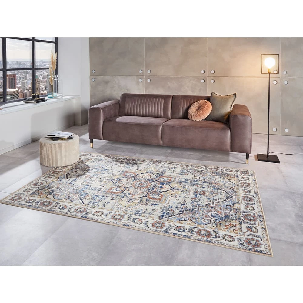 Dieser klassische Kurzflor Teppich besticht durch sein orientalisches Design voll zeitloser Eleganz. Harmonische Farbkombinationen und raffinierte Muster machen den Teppich zu einem optischen Highlight in jedem Zimmer. Die Verarbeitung ist gewohnt hochwertig und das beliebte Polyester Garn macht den Teppich strapazierfähig und gleichzeitig pflegeleicht.