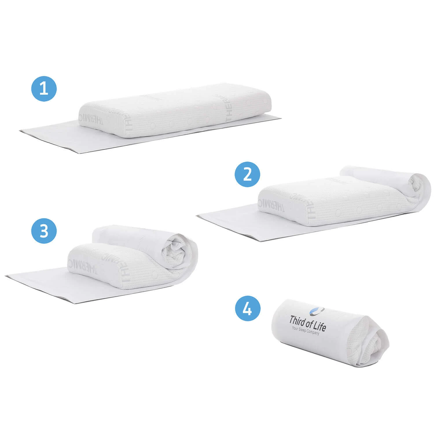 Zusätzlich ist es mit dem speziellen, thermoregulierenden Phase Change-Bezug (NASA-Technologie) ausgestattet, der für das ideale Schlafklima sorgt. Neben dem Bezug weist das Visco-Kissen auch die übrigen Ausstattungsmerkmale der Third of Life-Kissen auf – hochwertiger viscoelastischer SmartFoam (CosyPUR®) und komplett durchgängige Ventilationskanäle für die optimale Belüftung! Leicht zu transportieren – das Kissen lässt sich dank des mitgelieferten Aufrolltuchs leicht einrollen und bequem transportieren.
