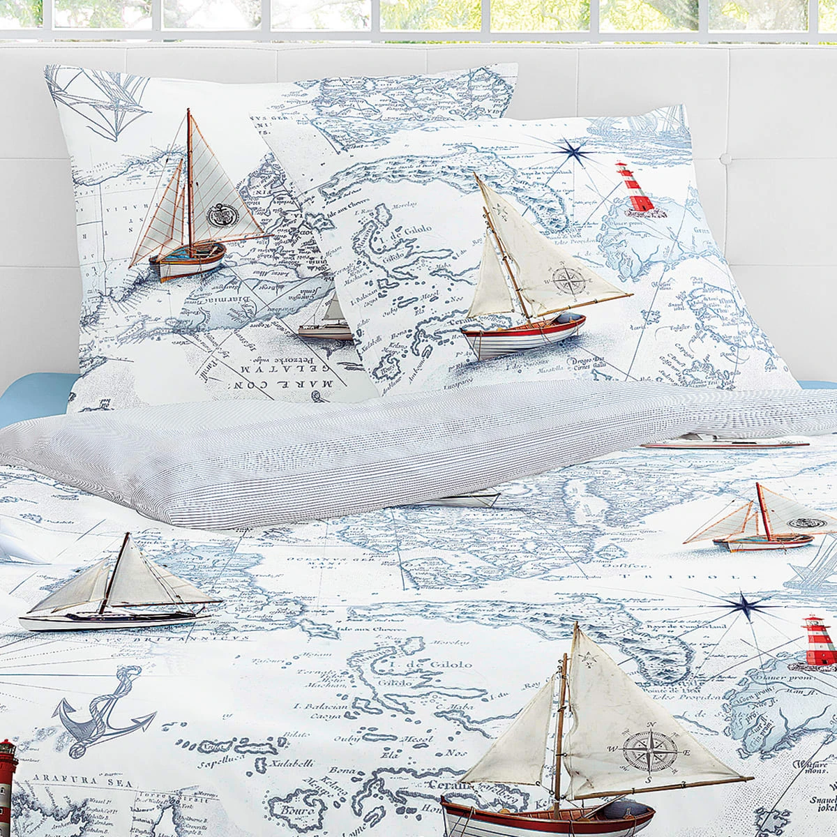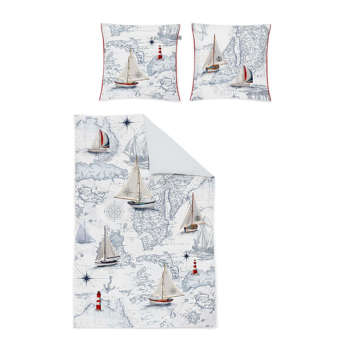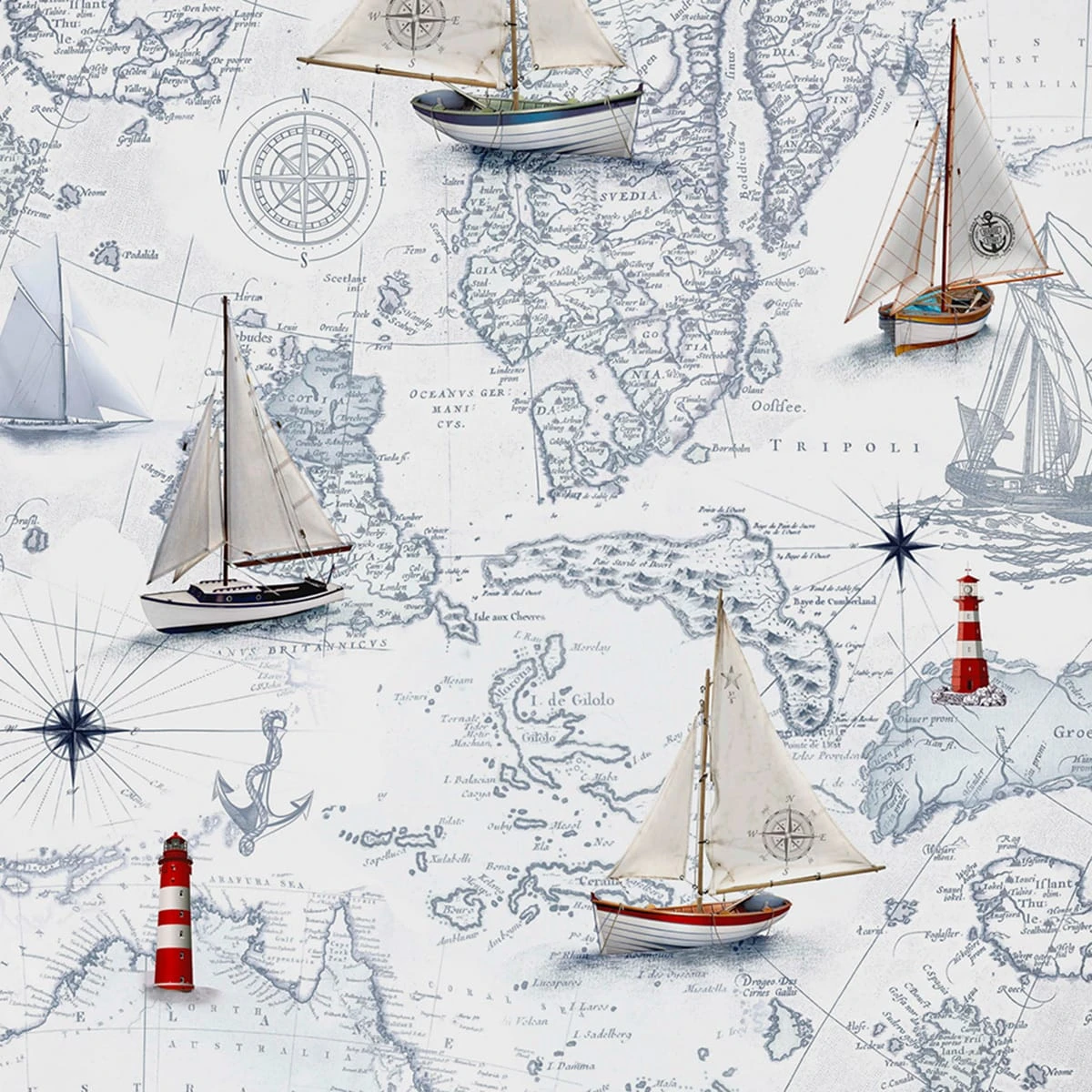 – Maritimes Design mit Anker, Segelboot und Leuchtturm