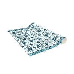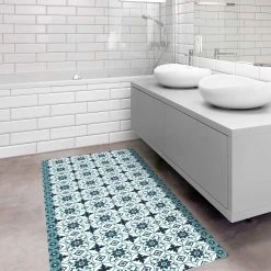 WallArt Vinyl-Teppich – Geometrischer Fliesenmix Blume Türkis In Türkis