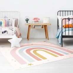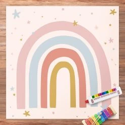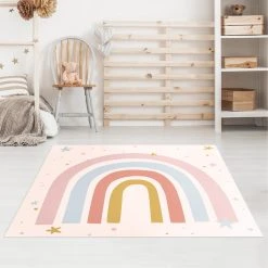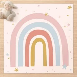 WallArt Vinyl-Teppich – Großer Regenbogen Mit Sternen Und Pünktchen In Pastell
