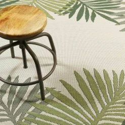 Der gewebte Kurzflor-Teppich „Cancun“ von WECONhome ist ein Teppich mit einer einzigartigen Ausstrahlung. Verschiedene Blätter zieren den modernen Outdoor-Teppich und verleihen Räumen das gewisse Etwas. Auf dem cremefarbigen Untergrund kommen die Blätter-Prints besonders gut zur Geltung. Man fühlt sich sofort in einer anderen Welt abseits der Hektik des Alltags. Flexibel Indoor oder Outdoor einsetzbar, erzeugt Cancun frischen, modernen Charme. Cancun ist ein robuster, pflegeleichter Teppich und geeignet für Fußbodenheizungen noch dazu. Er ist perfekt für alle, die ein besonderes Ambiente lieben, ohne dabei zu sehr auffallen zu wollen.