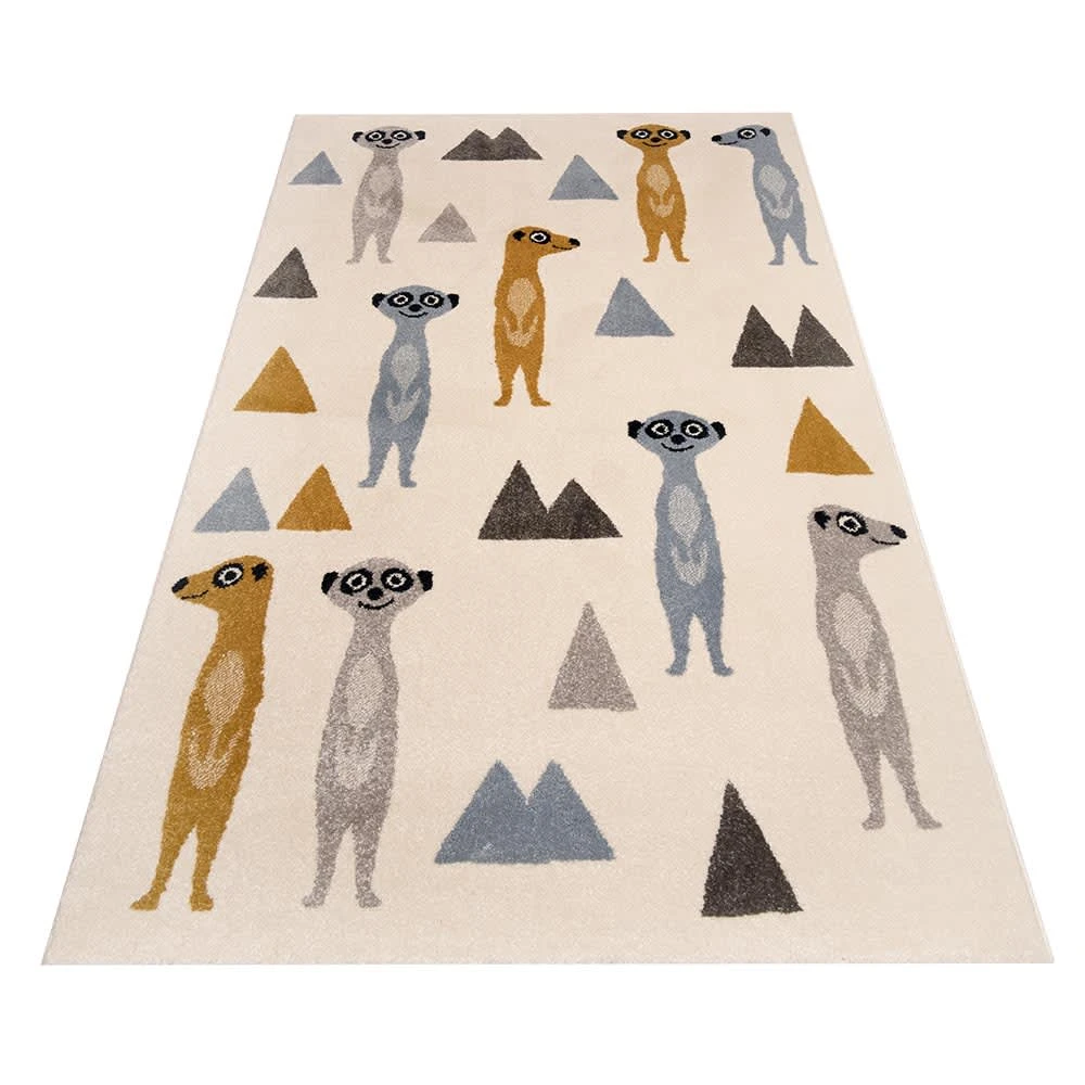 Zala Living Hochflor Kinderteppich Happy Meerkats Creme Bunt 120×170 Cm